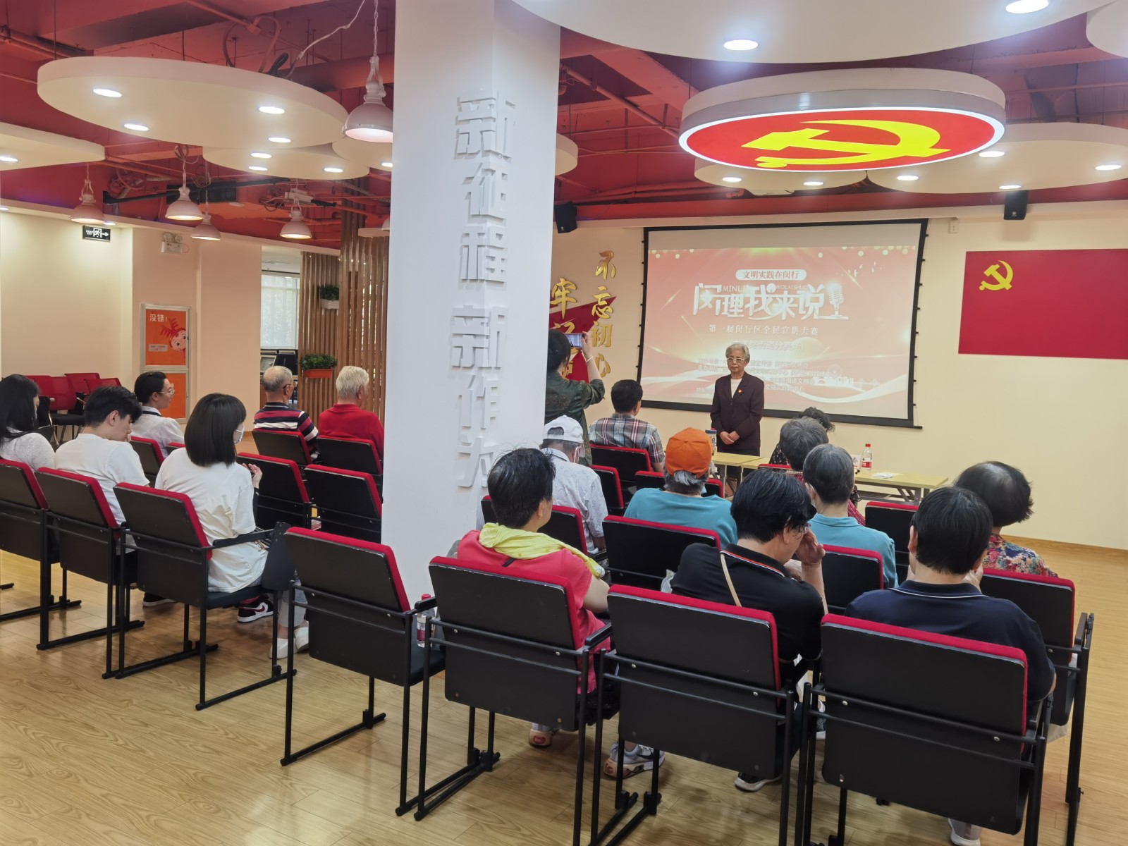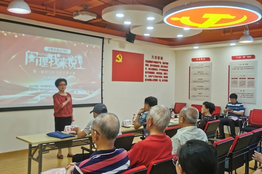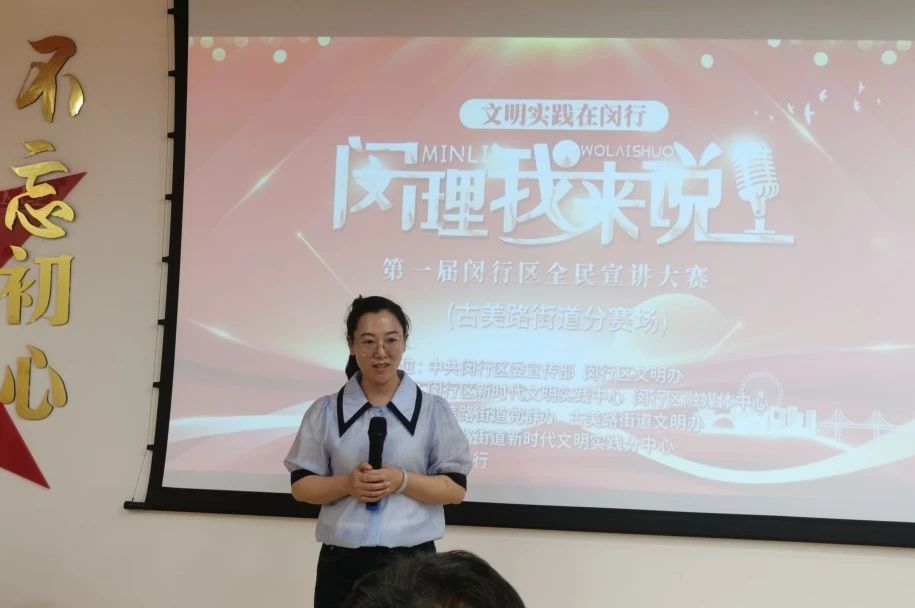 “在我们古美四村有这样一位74岁的白发老太太。个头不高,一头干练的银色短发,带一副时尚白框眼镜……”“原来对离开三尺讲台依依不舍,总觉得我还有能量可以释放……”在娓娓道来的故事中,动情真挚的感悟中,6月9日下午,“文明实践在闵行”第一届闵行区“‘闵理’我来说”全民宣讲大赛古美路街道分赛场活动在古美新时代文明实践分中心火热开赛。