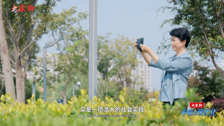 中国式现代化是人和自然和谐共生的现代化。近年来,上海坚定不移地走生态优先、绿色低碳发展之路。2025年底,上海公园总数将超过1000座。“大家心目中的公园城市是什么样子呢?”周冯琦给观众提了个问题,她说:“我心目中的公园城市不是简简单单地在城市中建公园,而是要努力把城市建成一座大公园,实现公园与城市空间的无界融合。”