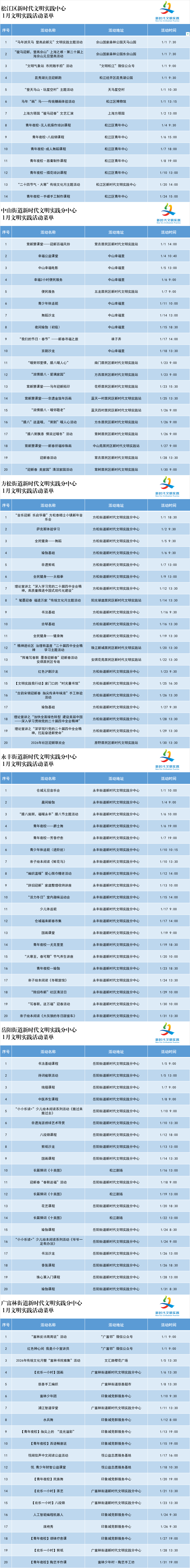松江区2026年1月新时代文明实践活动预告