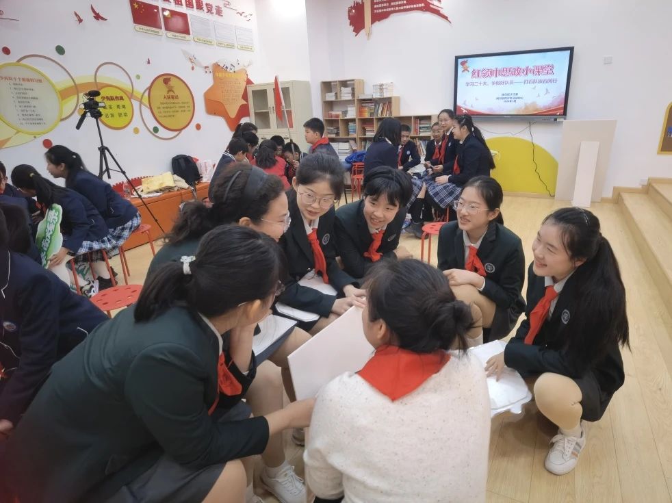 为深入学习宣传贯彻党的二十大精神、激发新时代少先队员热爱家乡、热爱祖国的深厚情感,用队员听得懂的语言讲思政,3月23日,来自莘城学校、龙茗中学、闵行三中、莘松中学、田园外国语中学、晶城中学、马桥复旦万科实验中学、教院友中、七宝鑫都实验中学的少先队员们齐聚一堂,积极参与闵行区“红领巾思政小课堂”——“打着队旗看闵行”微队课交流展示活动。