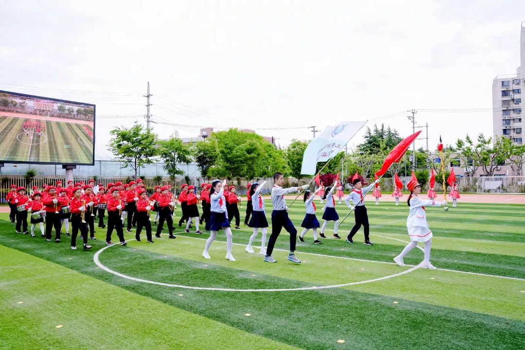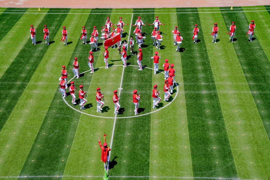 随着“比赛正式开始”的口令响起,赛场上顿时鼓号齐鸣,号声嘹亮震四方,鼓乐声声遏云霄。各支队伍以饱满的热情和昂扬的姿态自信地走入赛场依次展示。展演中,少先队员们身着各色鼓号队仪仗服,以方阵列队集合完毕,气宇轩昂、精神抖擞,通过乐曲和队形变化,用铿锵有力的节奏和嘹亮的鼓号声,吹奏出新时代少先队传承红色基因、赓续红色血脉、争做新时代好队员的宣告,彰显新时代少先队员听党话、感党恩、跟党走的坚定信念。