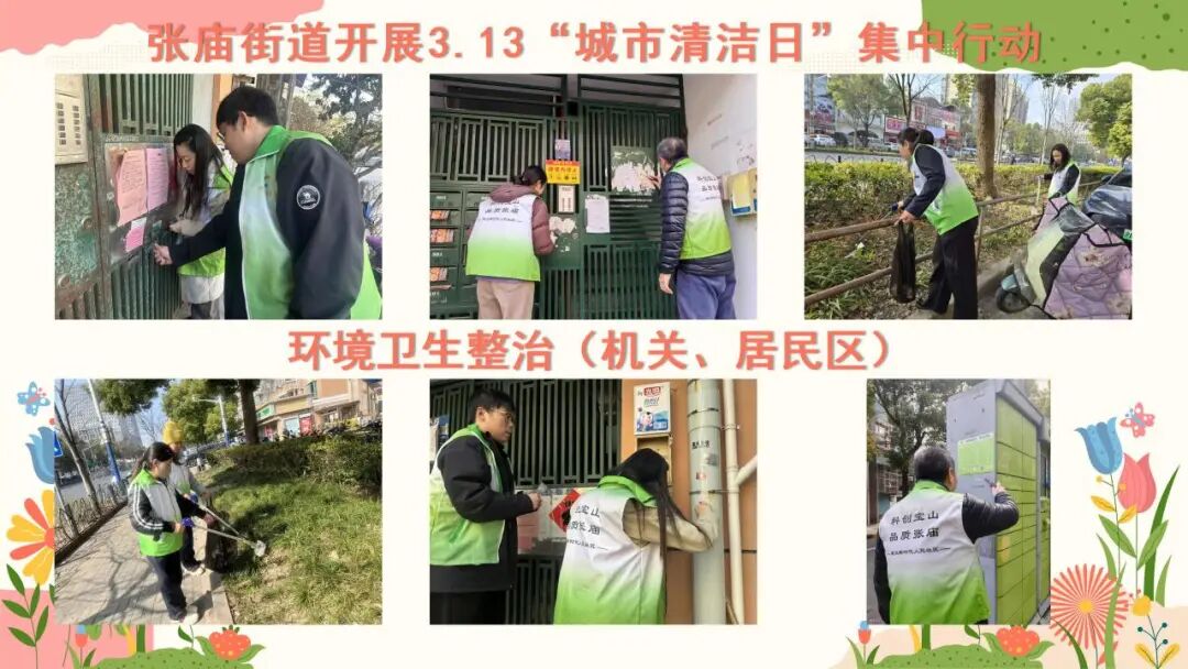 杨行镇“网格聚力 五维净城”城市清洁专项行动聚焦“净街清贴齐动手,洁美家园共创优”主题,对重点路段及宝安公路地铁站周边区域开展环境整治。综合行政执法队员深入沿街商户开展门责宣传,引导商户对责任区开展深度清洁,规范地铁站、公交站点共享单车停放,清理各类黑广告;杨行城运集团开展街面冲洗及深度保洁作业;各居民区统筹社区志愿者、物业力量,对辖区道路、绿化带漂浮垃圾及楼道卫生死角进行“拉网式”清理,同步做好垃圾分类宣传告知。