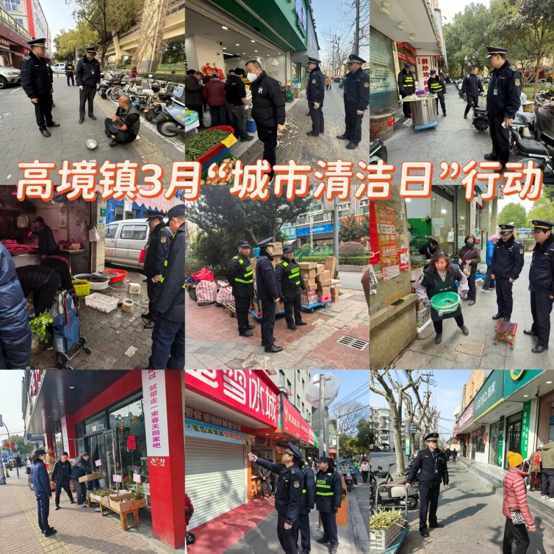 高境镇围绕中小道路、重点小区、轨交站点开展3月城市清洁日行动。行动中,镇综合行政执法队深入商户开展门责宣传,整治跨门经营,督促商户落实门前责任;环卫队伍对道路及公共设施进行高压冲洗、深度保洁,确保路面见本色、设施焕新颜;门责单位与商户拿起铲刀、喷壶,对沿街立面、灯杆箱体上的小广告进行地毯式清理,不放过一处死角;各居民区组织党员干部、志愿者捡拾垃圾、铲除楼道广告、清理公共堆物,并开展垃圾分类现场指导。