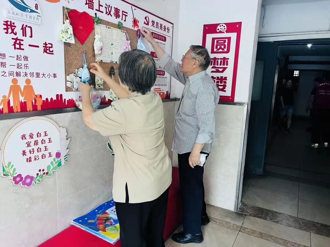 以“共享客厅”为起点,楼内线上群互动互助、定期开展读书分享、个人作品展示、共同迎接传统节日、共同制定楼组公约、一起排班轮流维护楼道卫生、一起关注楼内安全……内容丰富的活动、形式多样的参与,让白玉大楼形成了互帮互助、和谐友爱的邻里关系和文化氛围。白玉一委“人从众”工作法也在楼组文化建设的加持下,助力“邻立方”之花在115号楼绚丽绽放,并逐步向更多楼组辐射延伸。