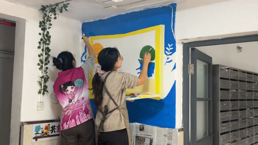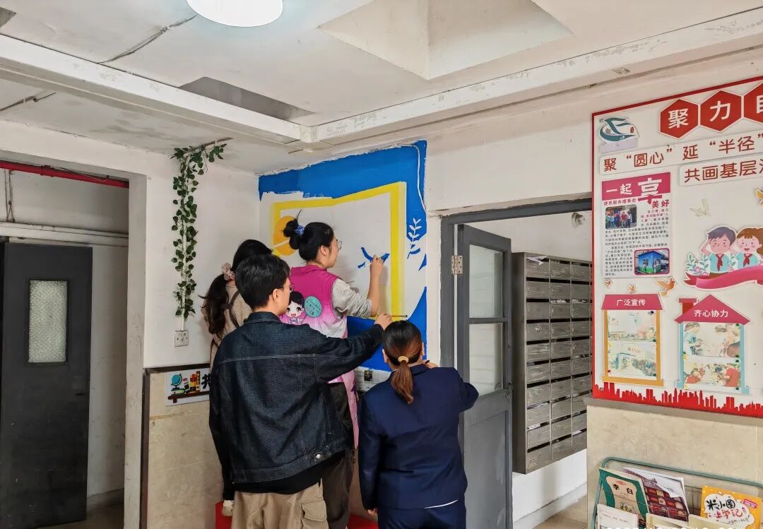 楼组“第二梯队”成员在改造提升中主动担当、积极作为,彰显基层治理生力军作用。具备绘画、设计特长的居民志愿者主动请缨,利用闲暇时间匠心创作,将原本斑驳陈旧的楼道墙面焕新为特色文化涂鸦墙,“星辰大海”主题图景不仅扮靓楼组环境、涵养楼组文化,更生动传递出居民对美好生活的热切向往与共同追求。