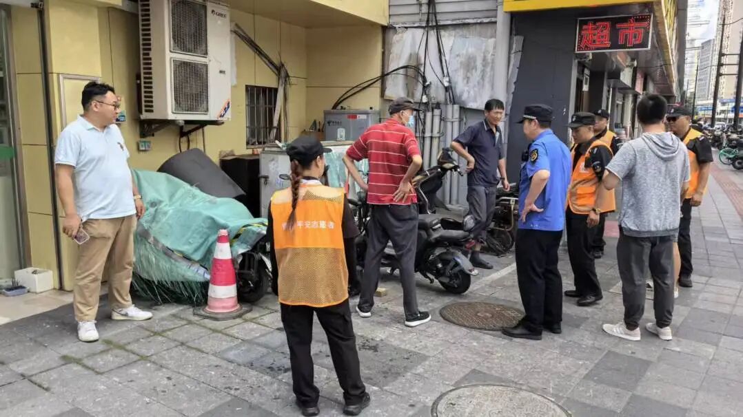 行动当天,针对部分容易返潮且市容管理问题易发的点位,由管理办牵头,联合综合网格工作站、综合执法队、第三方市容管理队伍,主要针对局门路、中山南一路周边商铺进行综合治理,针对无序堆物、路面污损、飞线充电等问题进行整治。