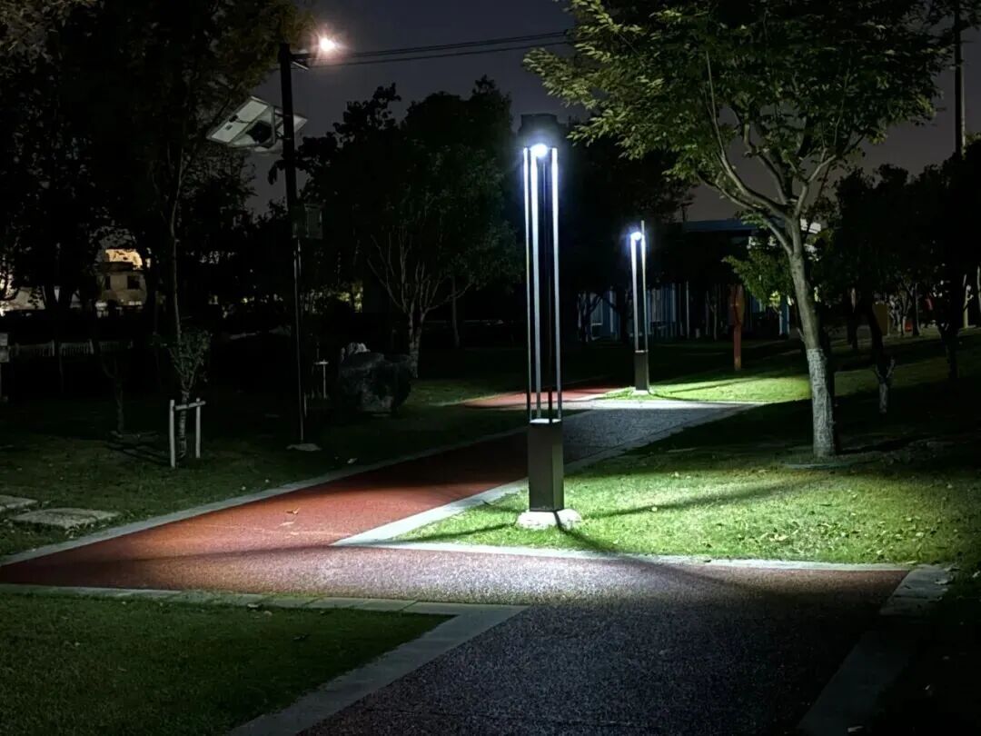 除了运动设施,公园的照明系统完成升级。将原本破损老化的照明设施,更换成高效节能的景观灯,调整了间距和高度,加装智能照明控制系统,实现根据环境光线自动调节亮度,晚上逛公园既亮堂又环保,安全感满满。