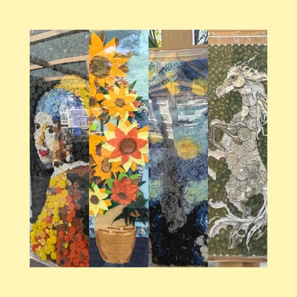 更具巧思的是,互动科普柱上陈列着以纺织品、纸张、塑料等废品为原料DIY而成的《戴珍珠耳环的少女》《星空》《向日葵》等世界名作仿制品,将垃圾分类科普融入艺术氛围,赢得居民纷纷点赞“优雅又实用”。