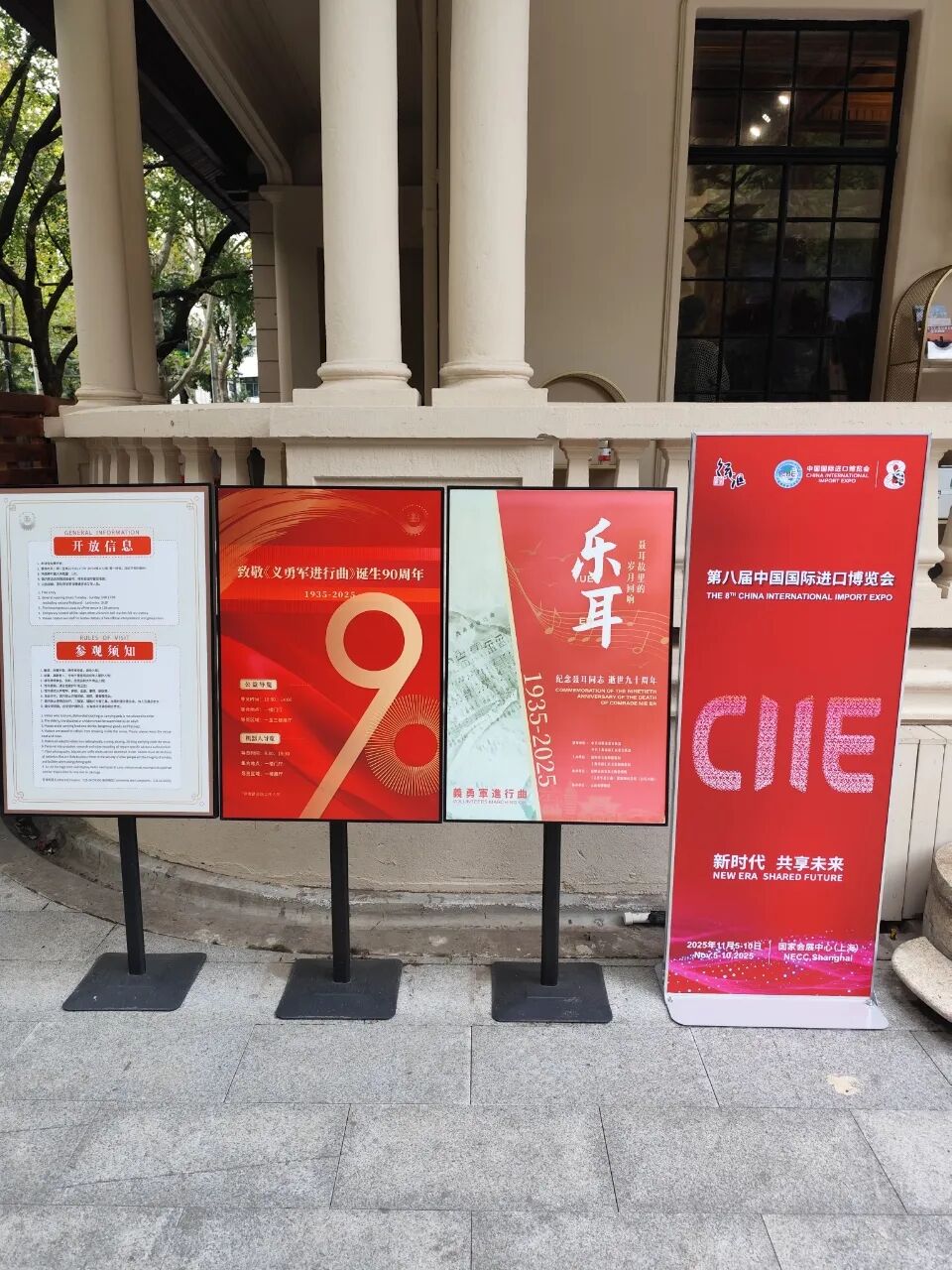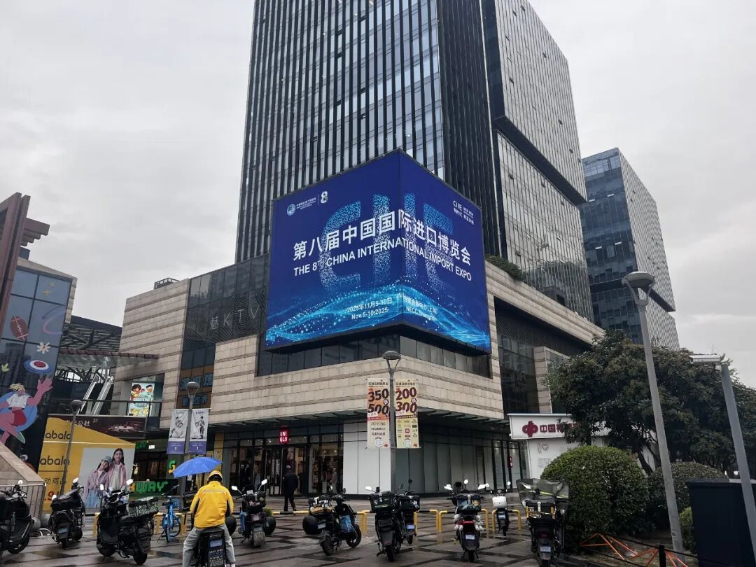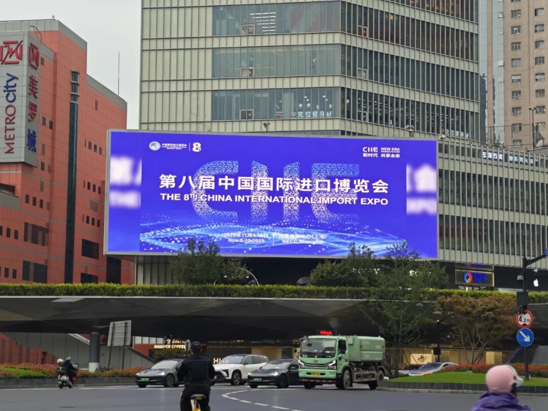 从衡山路到龙腾大道,定制款进博主题道旗迎风招展,"新时代 共享未来"等标语与梧桐叶影相映成趣。与此同时,港汇恒隆广场、美罗城等地标建筑LED大屏组成"光影方阵",每日循环播放进博会宣传片及主题宣传海报。在徐家汇书院、西岸美术馆等公共空间,电子屏实时更新进博会最新资讯,让市民在文化浸润中感受进博脉动。上下滑动查看更多进博会倒计时已启动徐汇区正以文明之名邀您共赴这场开放之约!无论是漫步滨江感受进博艺术氛围还是在志愿服务站收获暖心帮助每个角落都在诉说徐汇已准备好与全球宾客共享文明之美!
