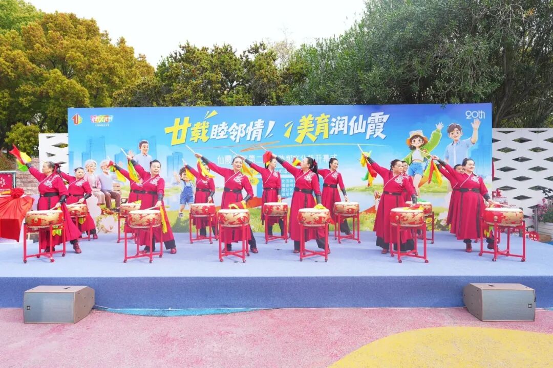 新华路街道的“雅韵非遗・何止琴曲”带来古琴《流水》演绎与昆曲戏服体验,让市民沉浸式感受传统雅韵;江苏路街道以沪苏粉画交流展搭配愚园春日Citywalk,串联艺术展览与城市漫游;华阳路街道的越剧沙龙与红色主题展览,将文化传承与红色教育结合。虹桥街道的科普阅读与二十四节气衍纸展,为孩子打开美育新窗;北新泾街道的宋锦体验与马赛克烛台DIY,碰撞出不同工艺之美;周家桥街道的“桥畔欢舞 韵动苏河”广场舞展示活动,充分展现社区舞蹈团队的靓丽风采与昂扬活力,传递邻里温情;天山路街道的曲艺戏曲综合场,荟萃传统艺术精华;仙霞新村街道的“廿载睦邻情,美育润仙霞”睦邻文化节群文展演在水霞公园热闹上演,社区文艺爱好者轮番登台,在美育浸润中增强社区凝聚力和居民归属感;程家桥街道的非遗篆刻与音乐鼓圈疗愈,兼顾艺术欣赏与身心放松;新泾镇的江南丝竹展演与二十四节气魔术,以创新形式让市民在家门口尽享有温度的美育盛宴。