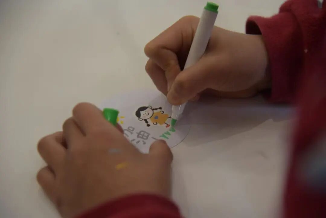 “我要画一个爱心,送给被欺负的小朋友。”小朋友们一边涂色一边说。在制作“反网络暴力鼓励勋章”环节,孩子们用彩笔和贴纸设计出属于自己的文明勋章,写上“你很棒”“不要哭”等暖心话语,用童真的方式传递善意与勇气。
