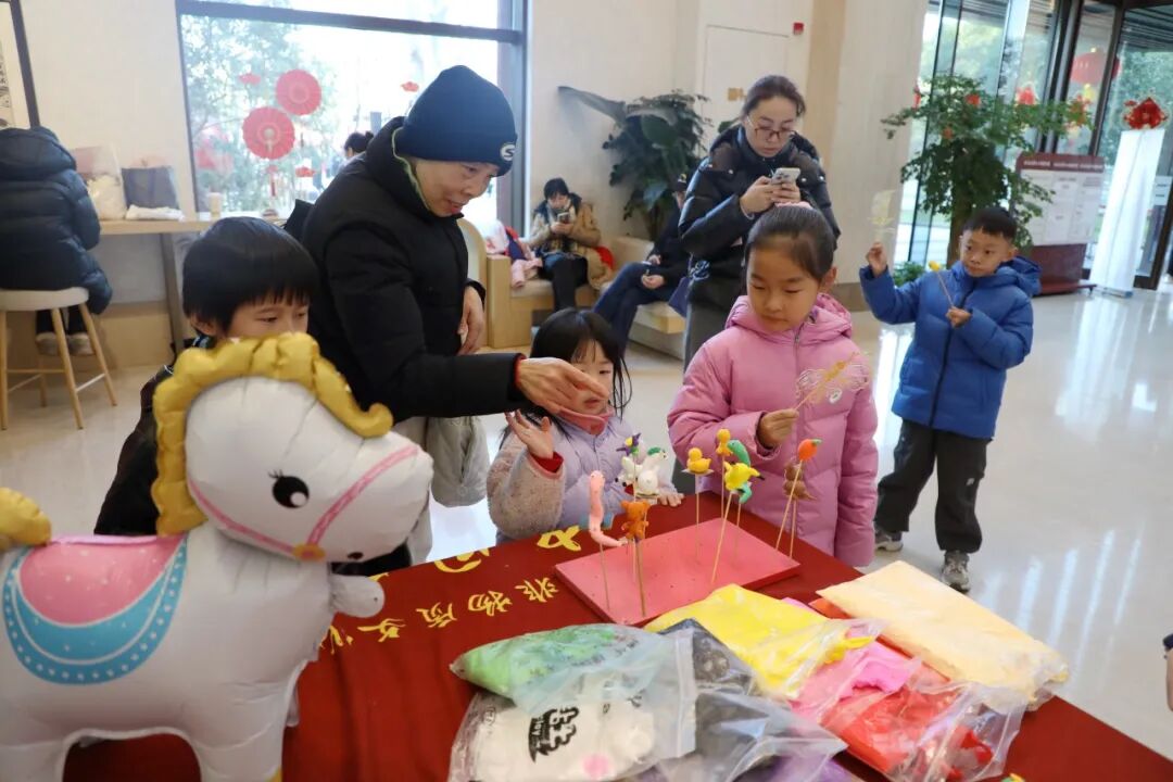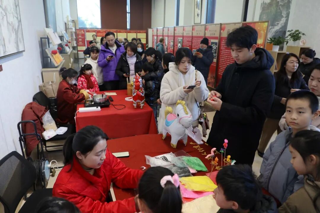 非遗体验区人气颇旺,在大小朋友们的围观下,手艺人指尖翻飞,五颜六色的面团变幻出栩栩如生的各种萌物,既有马年的吉祥寓意,又饱含传统手艺的巧思;糖人香气四溢,融化的糖浆在石板上肆意流淌,勾勒出龙、凤、福字等吉祥图案。