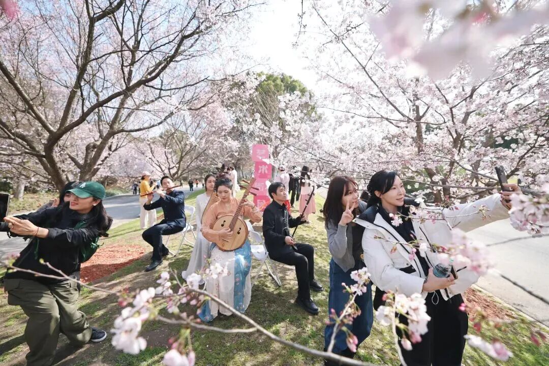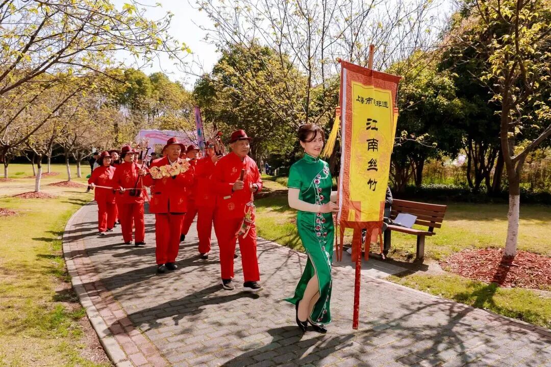 “11”聚焦“文化赋能樱花季”,推出涵盖文艺、阅读、展览等12项内容的文化盛会。比如,特设艺术街角演出,与沪上高校联动的樱花服饰秀、邀请市级非遗江南丝竹演奏者等,在樱花林中带来流动式艺术表演,全方位提升游园体验与参与感;开展 “樱花树下的故事荟”亲子阅读活动以及“花间织梦”非遗插画展、“二十四节气诗书画乐巡展”,推动非遗文化与当代创意、数字科技深度融合,彰显传统文化的时代生命力。