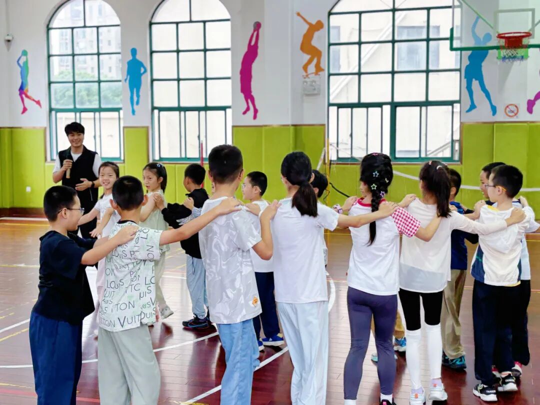10月18日上午,由杨浦区委宣传部、区文明办主办的2025年杨浦区“扣好人生第一粒扣子”主题教育实践系列活动在上海市江浦实验学校顺利开展。本次活动以“趣享运动活力,赋能心灵成长”为主题,通过一系列精心设计的团队运动与协作挑战,引导孩子们在运动中释放压力、增强心理韧性,在互动合作中收获快乐与成长,促进未成年人“阳光成长”。