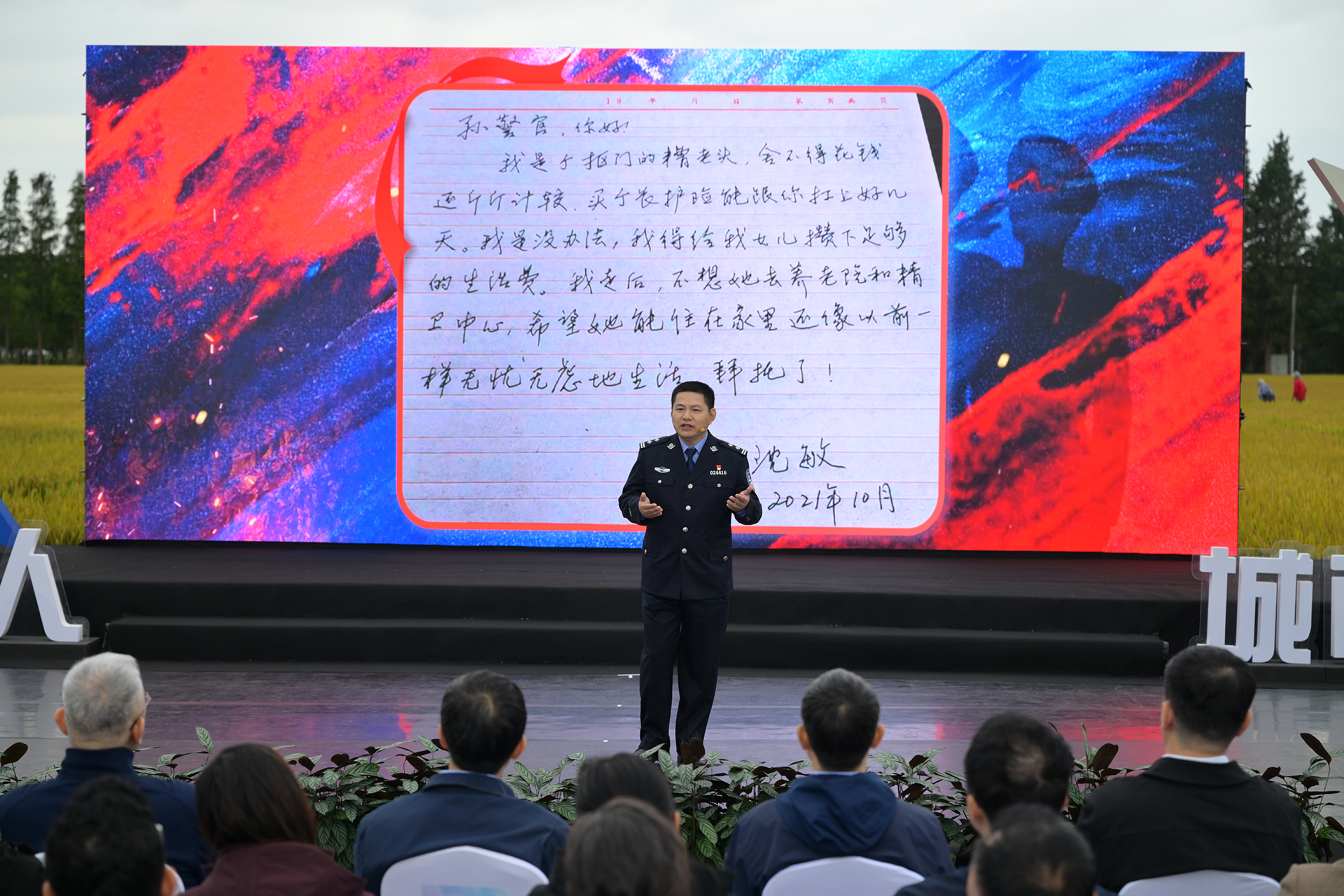 10月21日下午,在金秋十月的广阔稻田,2025年“城市文明开放麦”第二场市级专场活动《生态画卷里的未来约定》,在松江区泖港镇胡光村举行,13位城市文明市民发言人现场讲述了自己参与城市文明建设的生动故事。来自全市各区的文明单位、文明社区、文明校园代表和市民代表共同参加了活动。