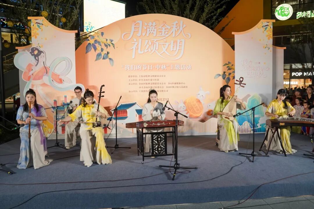此外,朱泾花灯团队也带来了精彩绝伦的非遗花灯表演,造型各异、色彩斑斓的花灯在表演者的手中上下翻飞,为即将开始的中秋歌会营造出热闹喜庆的浓厚传统氛围。