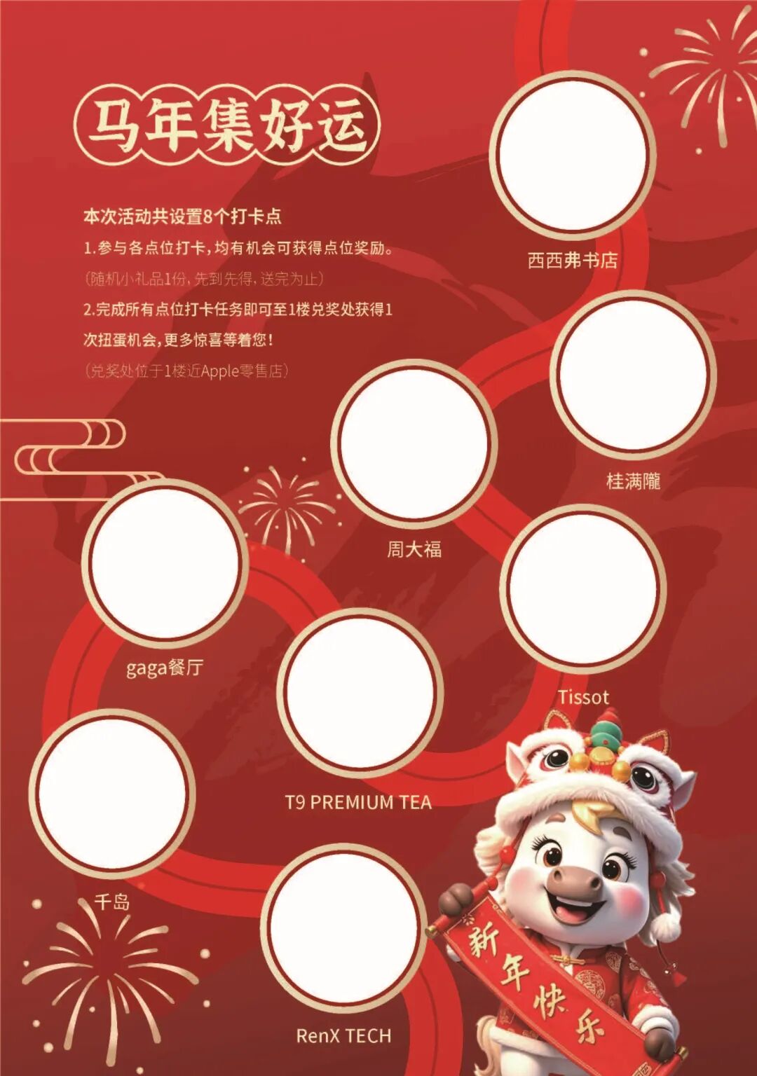 普陀区新时代文明实践中心、长风新村街道携手环球港举办“国风寻宝 春满环球”新春定向打卡,商场化身“藏宝地图”,春节习俗谜题、诗词接龙、投壶套圈等趣味任务藏在门店中。暂时甩开KPI,来一场“去班味”式游园,完成挑战收集各式“福气印章”,即可获得抽奖机会,赢取马年服装、国潮盲盒、马年邮票、有机蔬菜、餐饮代金券、鲁迅特色周边、英雄钢笔等精美好礼(现场报名参与,先到先得,额满即止)。