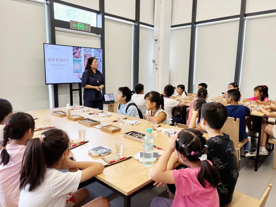 10月12日上,由杨浦区委宣传部、区文明办主办的2025年杨浦区“扣好人生第一粒扣子”主题教育实践系列活动之“探寻艺术瑰宝,传承文化薪火——‘敦煌当代美术馆’主题研学活动”在敦煌当代美术馆成功举办。本次活动通过沉浸式参观、主题艺术讲座与泥版画制作体验,带领孩子们走进敦煌艺术,感受中华优秀传统文化的深厚底蕴与永恒魅力。