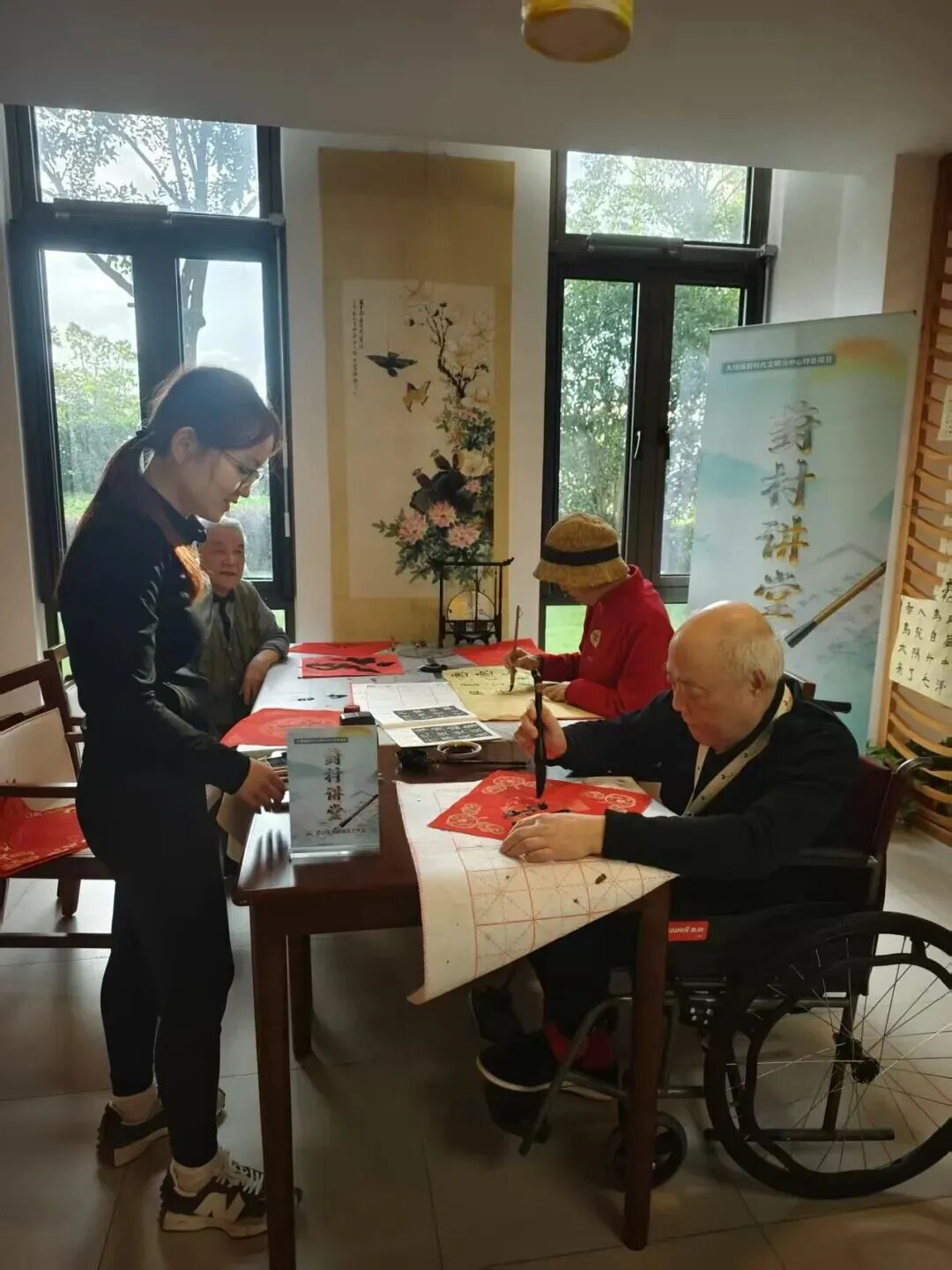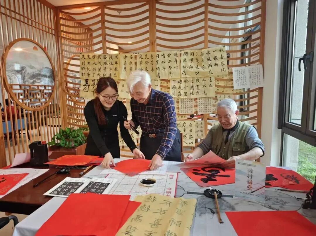 宝山区道德模范苏金成工作室的书法活动吸引了各个年龄段的居民前来参与。新年送福、重阳送福……还有日常的书法教学。大家在笔墨间感受书法的美,还通过书法作品传递祝福,让“书香满镇、文明传家”的氛围更浓。