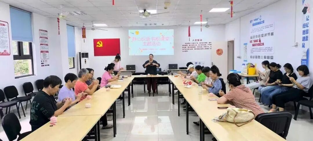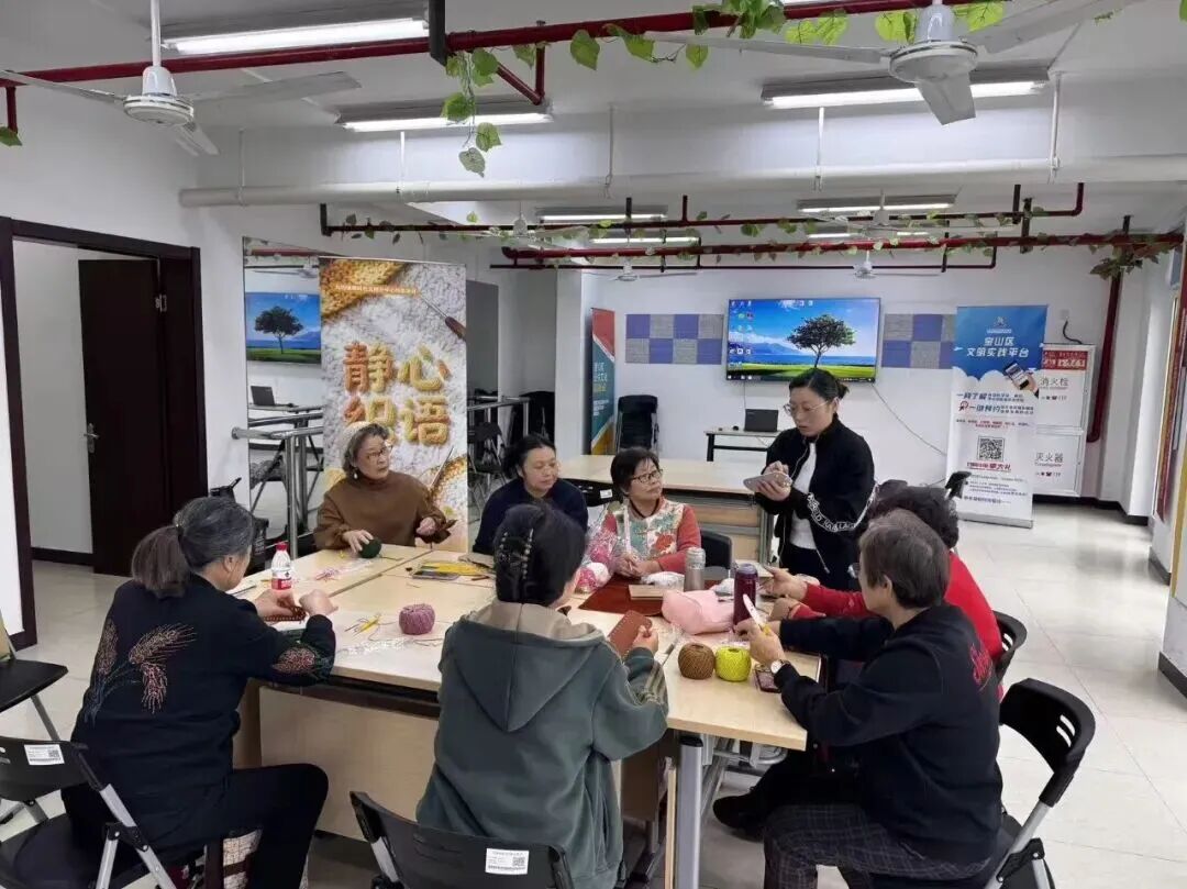 彩色毛线在手里翻飞,一个个精致的小发圈、漂亮的头饰,还有实用的小披肩、小包包慢慢成型。静心织语公益课堂的老师们把传统钩织手艺和节日、居民实际需求结合起来,大家在做手工的过程中既能感受传统手艺的魅力,又能纾解心情。不少人还把亲手做的作品送给邻里、困难家庭,让温情通过钩织传递。