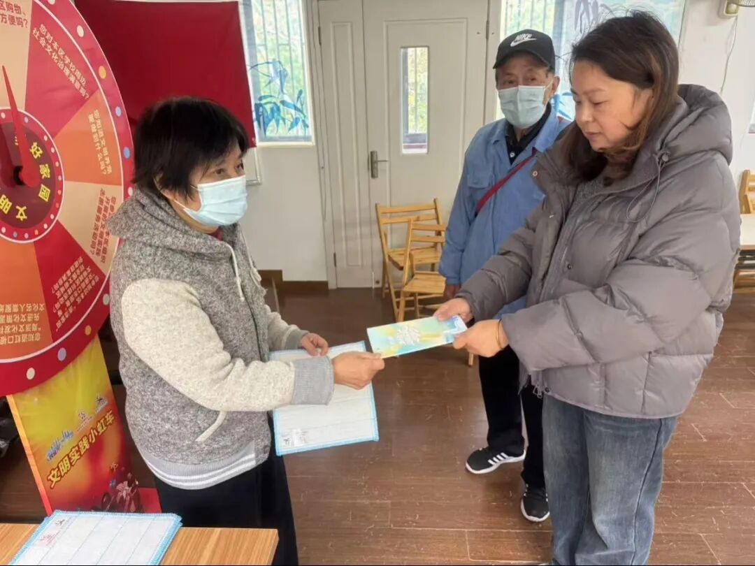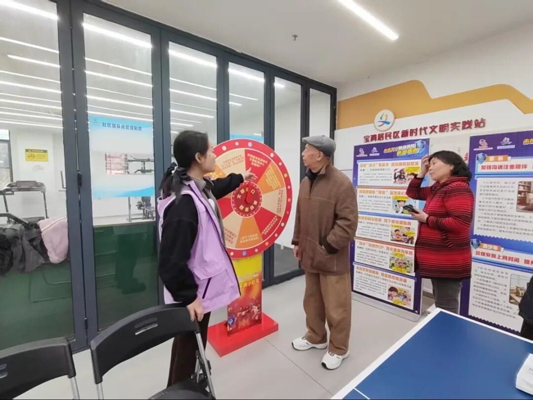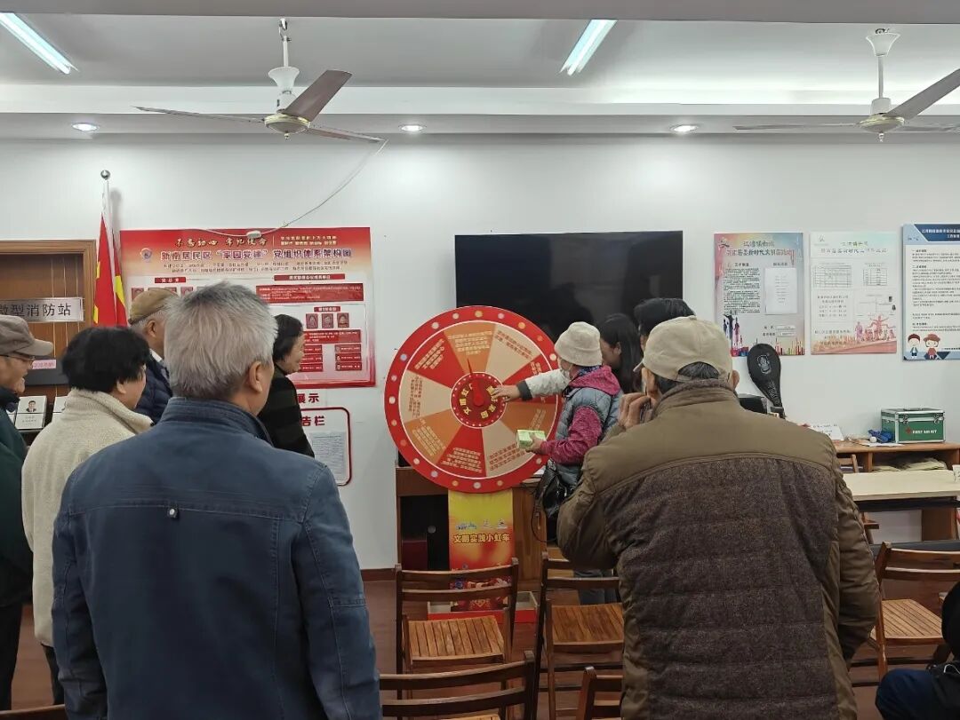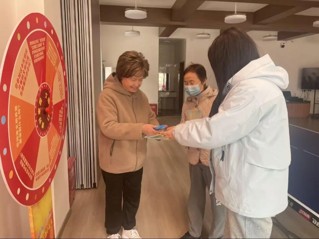 活动现场,通过文明知识大转盘向居民传递文明知识,居民们踊跃参与问答互动,围绕文明养宠、厉行节约、志愿服务等贴近日常生活的文明主题,居民们认真思考、积极作答,成功答对者收获实用小礼品,在轻松愉悦的氛围中加深了对文明行为的理解与认同。工作人员同步向居民分发宣传页,清晰展示社区新时代文明实践阵地的服务内容、活动安排及参与方式,引导居民主动投身文明实践,争做文明行动的践行者与传播者。