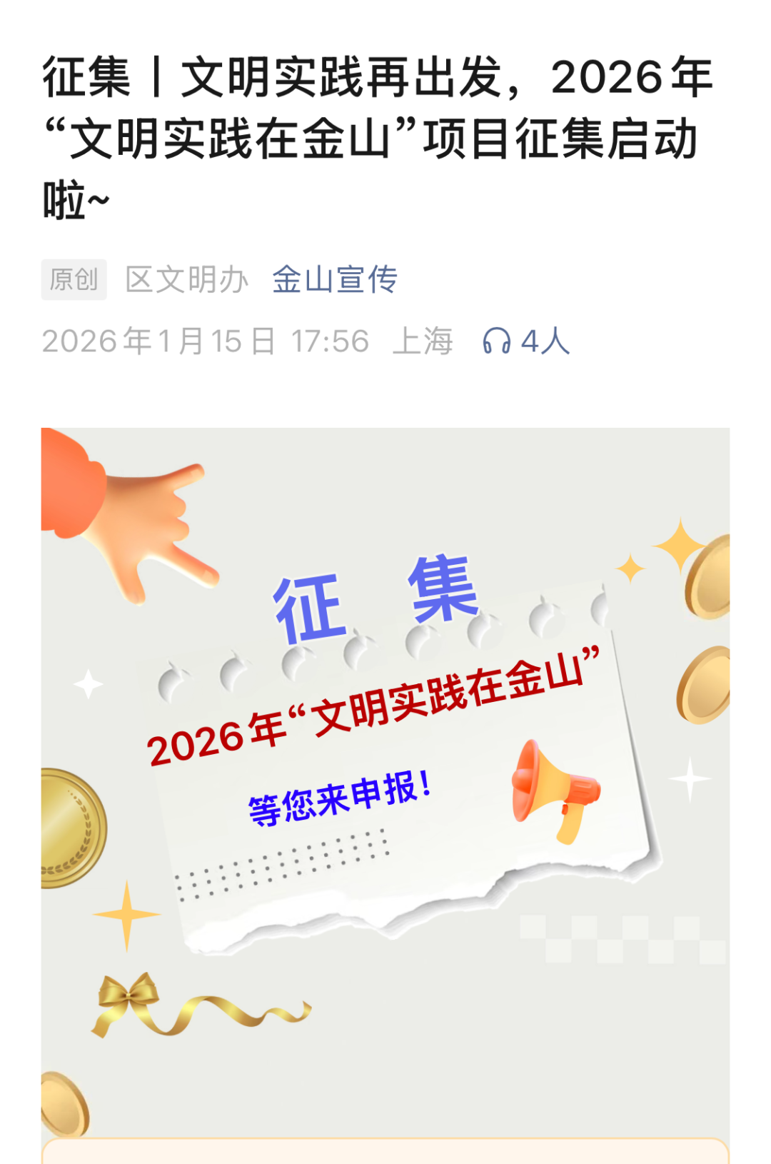 金山区积极探索创新,聚合社会组织、企事业单位、文明单位、文明实践队伍等多元力量,为文明实践注入源源不断的活力,通过“文明实践在金山”配送服务项目实施,提升金山区市民对文明实践服务活动的满意度和参与度,推动全区文明实践活动精准化、常态化、便利化、品牌化开展。