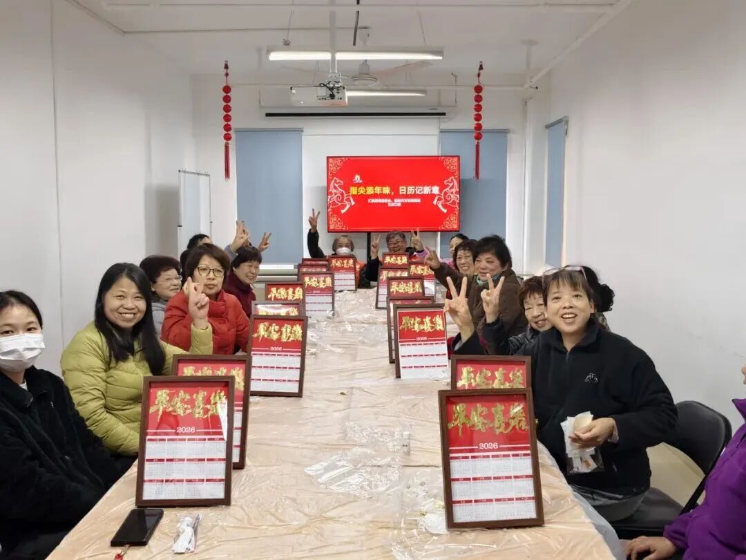 汇枫景苑新时代文明实践站携手尤旦口腔,共同举办“指尖添年味,日历记新章”金箔日历手工活动。居民们欢聚一堂,以巧手绘制年历,用金箔点缀祝福。活动现场,彩纸金箔相映生辉,大家互相交流、笑语不断。一份份亲手制作的日历,不仅承载着对新年的期盼,更在协作互动中加深了邻里情谊,让传统手工艺的温度,化为冬日里最温暖的社区记忆。