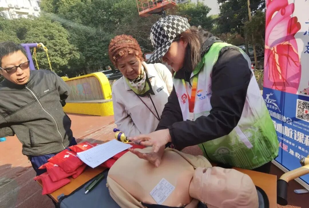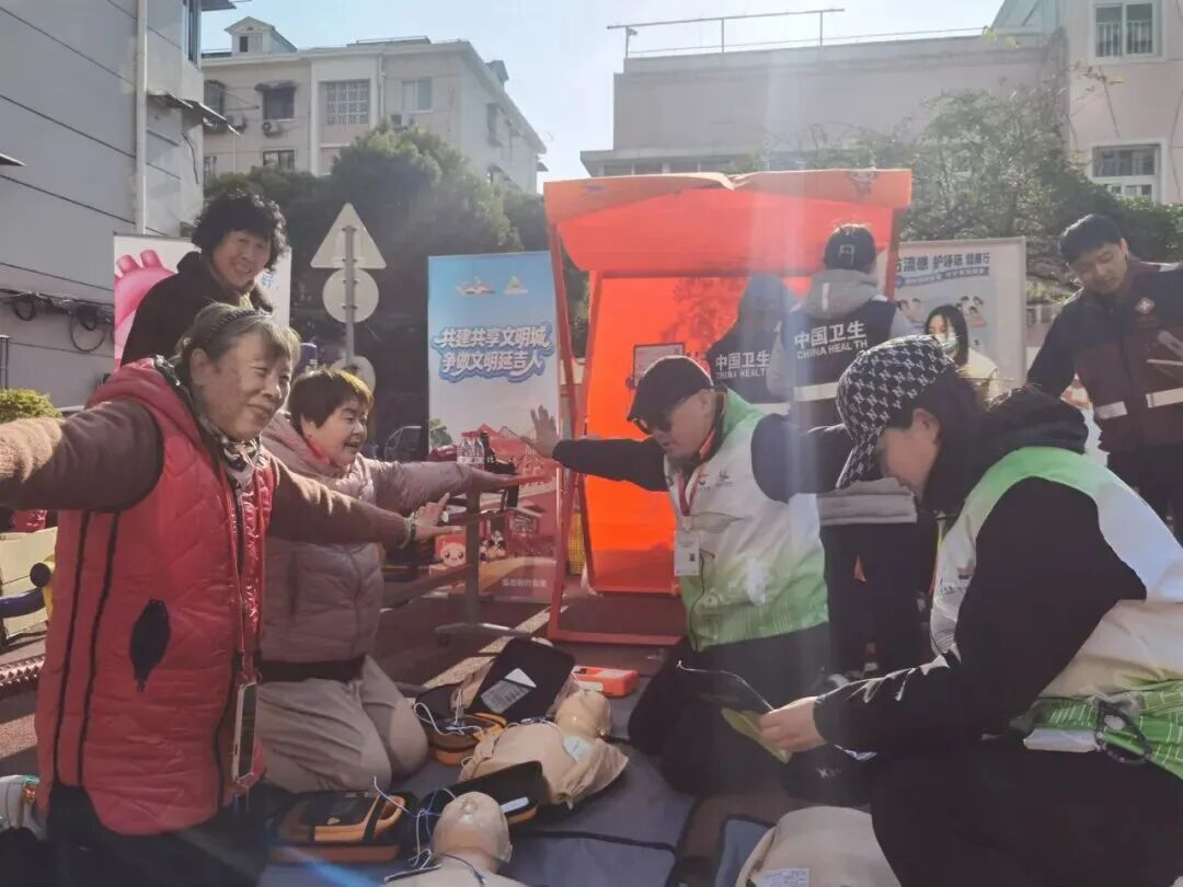 急至救护志愿服务队则带来了实用的救护知识普及。志愿者们通过模拟演示,向居民传授AED使用、心肺复苏、止血包扎等急救技能,并现场指导家庭急救包的正确使用方法,帮助居民掌握紧急情况下的自救互救能力。