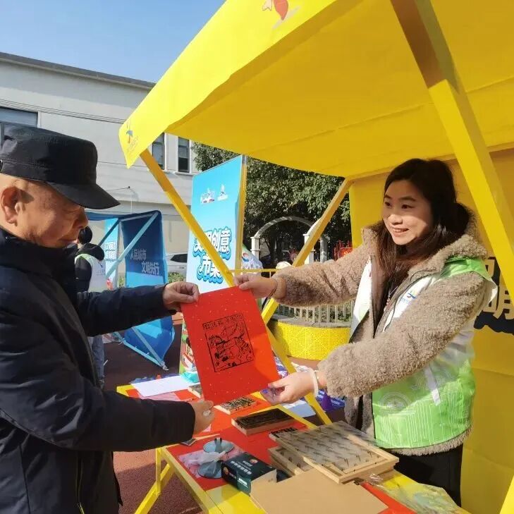 街道新时代文明实践分中心精心打造的“文明记忆”互动游戏成为活动现场的一大亮点。通过将社会主义核心价值观等内容设计成“翻翻乐”,让居民群众在轻松地参与中感受文明新风,推动文明理念从“被动接受”走向“主动体验”。木板拓印体验区吸引众多居民驻足。在工作人员的指导下,居民们亲手制作拓印作品,感受传统技艺的魅力。居民王师傅表示:“通过拓印体验,不仅了解了非遗文化,还亲手制作了纪念品,非常有意义。”