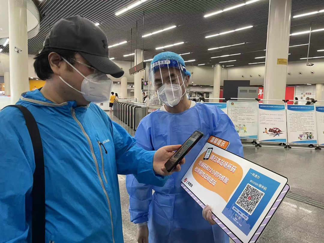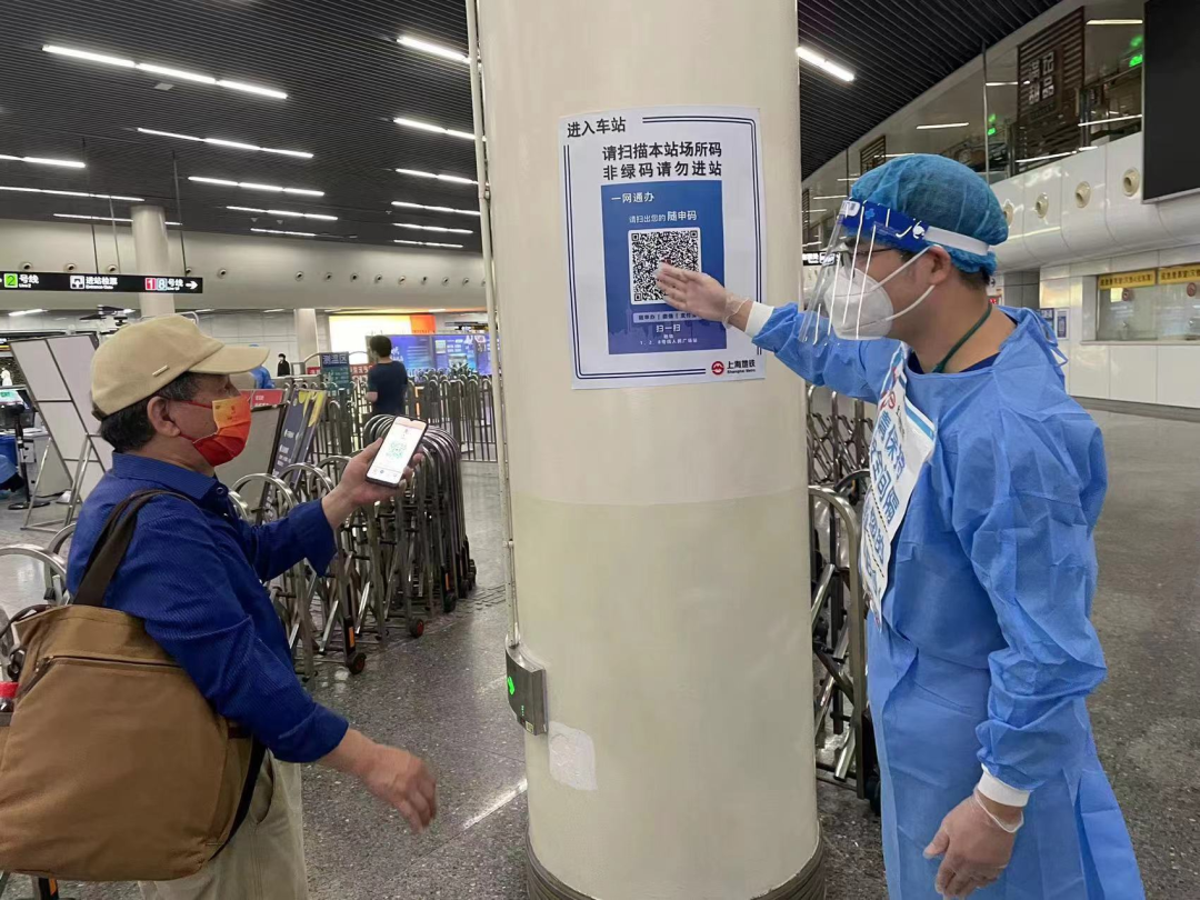 志愿者服务队第一时间对接申通地铁集团一号线人民广场地铁站,针对地铁恢复运营叠加端午小长假预计客流量激增的实际情况,从6月6日起至6月10日每天安排志愿者,配合车站宣传引导乘客“进站扫码通行”,提示乘客佩戴好口罩并配合测温,帮助实现个人健康状态核验和信息登记。同时,制定《关于人民广场地铁站志愿服务常态化工作方案》,并根据疫情防控相关要求,对符合条件的机关青年志愿者形成动态化清单,每周一早高峰安排志愿者开展常态化服务。