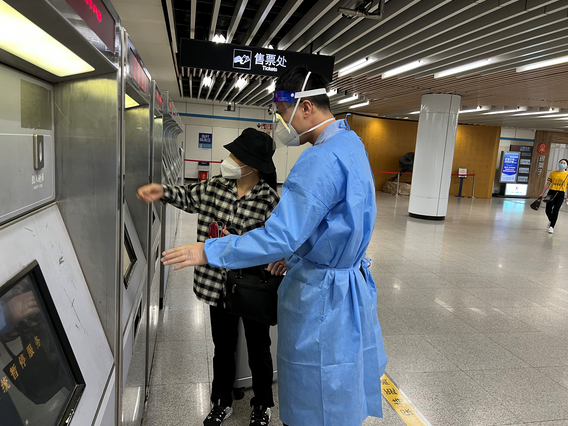 每位志愿者在上岗前,都会提前学习《全面恢复运营初期地铁车站志愿者工作手册》,掌握基本的工作要求和技能。面对早高峰的巨大人流量,志愿者们在做好安全防护的基础上,有条不紊开展志愿服务,提醒乘客遵守防疫要求,耐心诚恳地帮助有困难的群众。