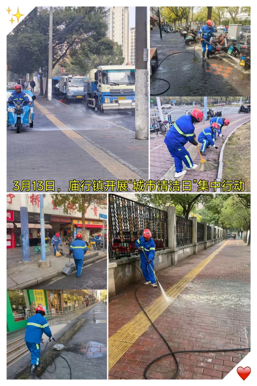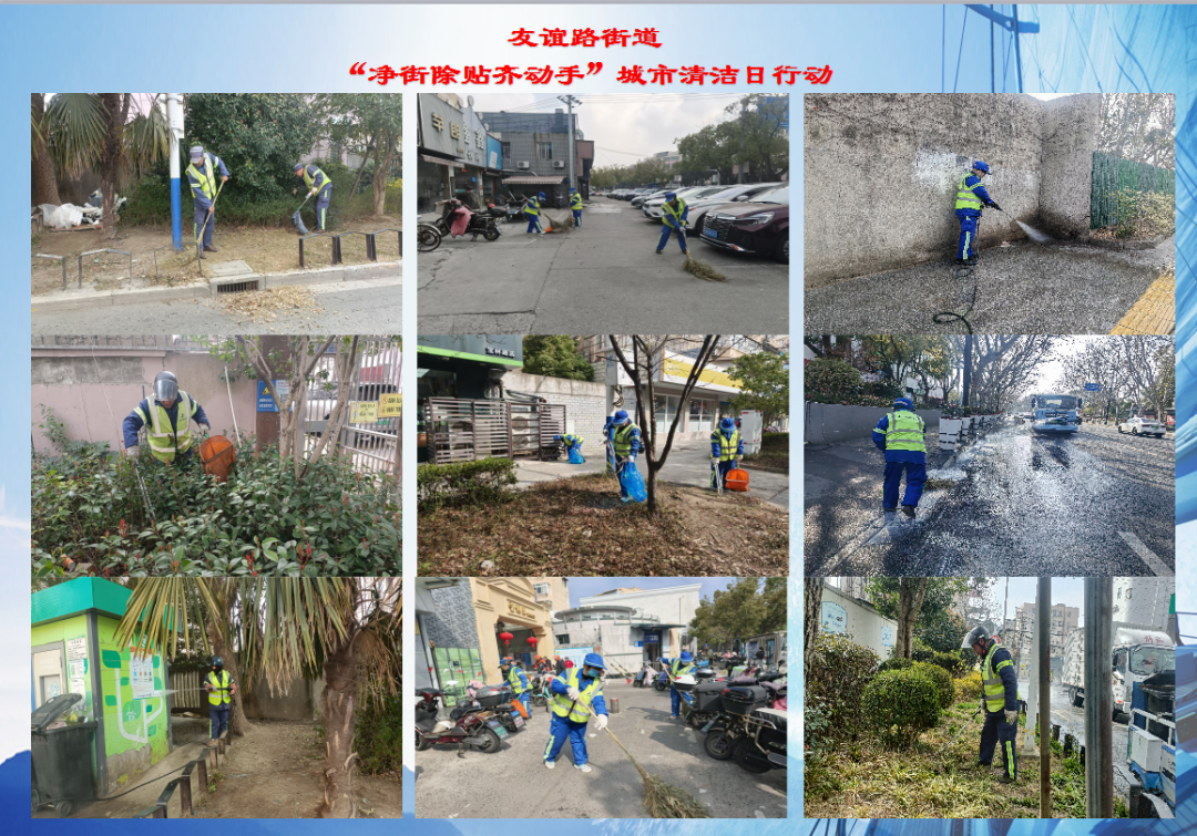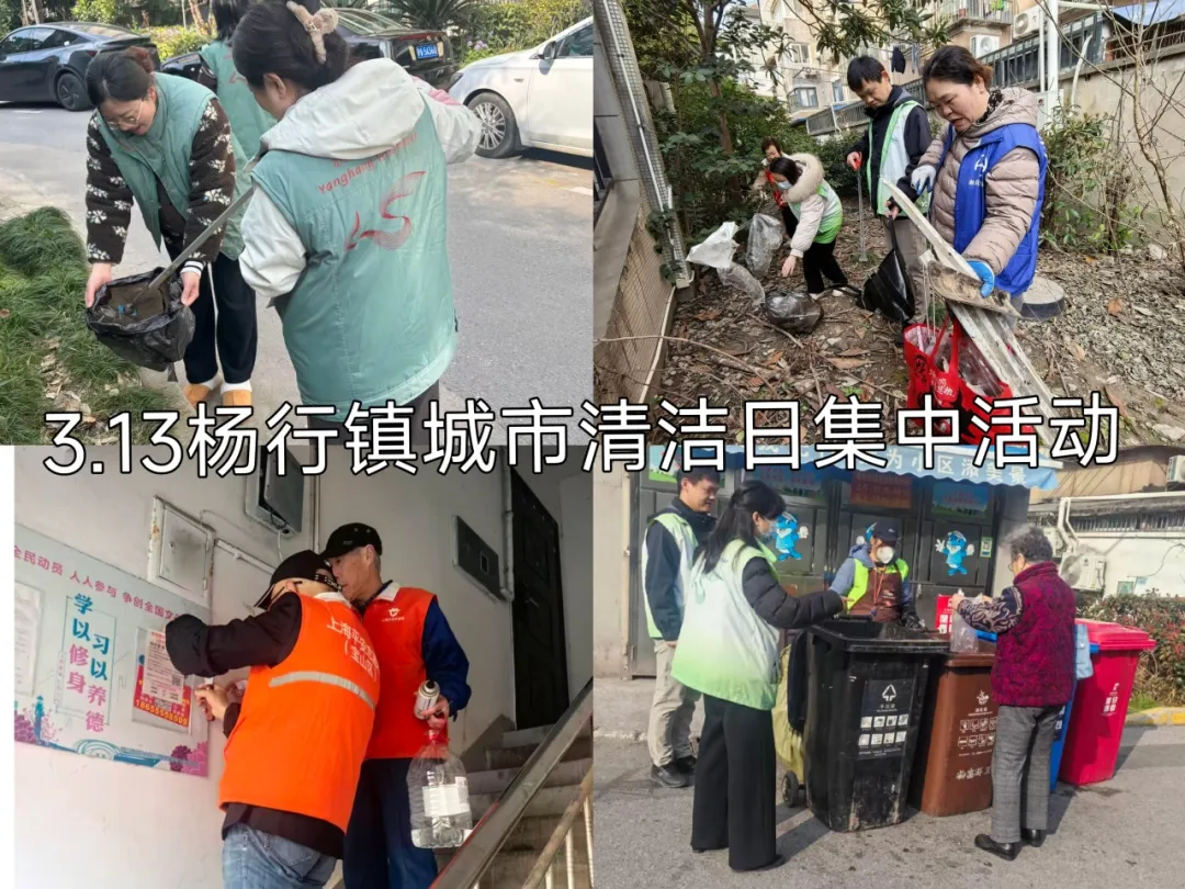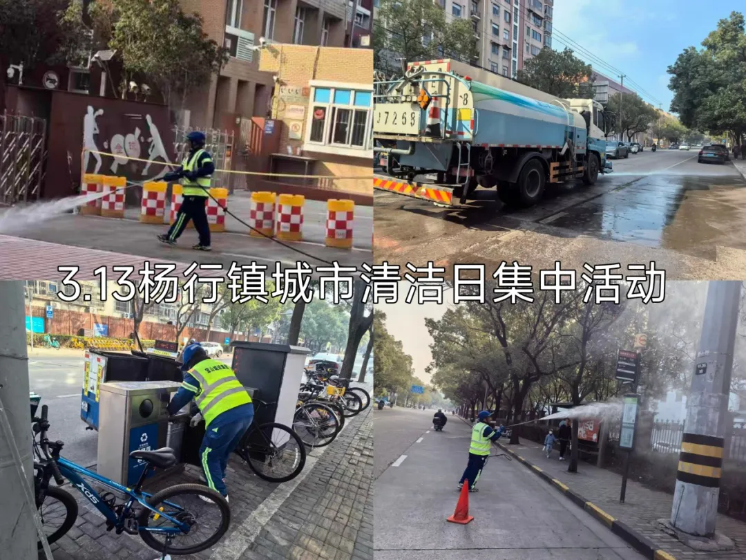杨行镇“网格聚力 五维净城”城市清洁专项行动聚焦“净街清贴齐动手,洁美家园共创优”主题,对重点路段及宝安公路地铁站周边区域开展环境整治。综合行政执法队员深入沿街商户开展门责宣传,引导商户对责任区开展深度清洁,规范地铁站、公交站点共享单车停放,清理各类黑广告;杨行城运集团开展街面冲洗及深度保洁作业;各居民区统筹社区志愿者、物业力量,对辖区道路、绿化带漂浮垃圾及楼道卫生死角进行“拉网式”清理,同步做好垃圾分类宣传告知。