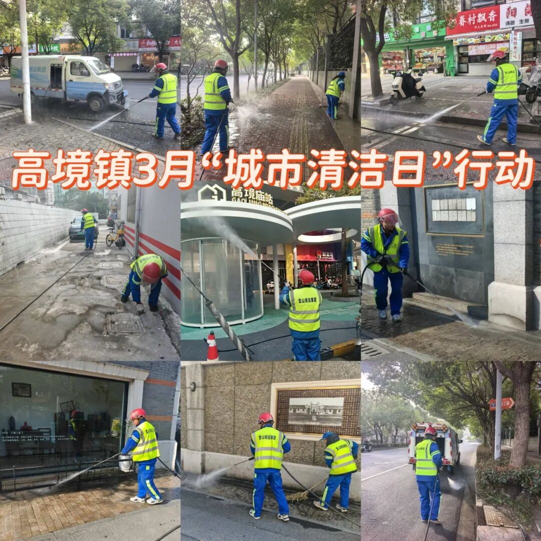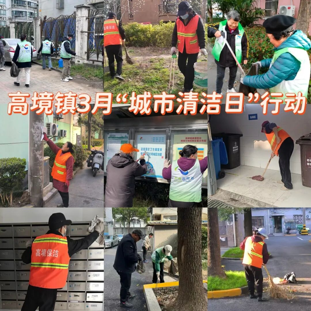 高境镇围绕中小道路、重点小区、轨交站点开展3月城市清洁日行动。行动中,镇综合行政执法队深入商户开展门责宣传,整治跨门经营,督促商户落实门前责任;环卫队伍对道路及公共设施进行高压冲洗、深度保洁,确保路面见本色、设施焕新颜;门责单位与商户拿起铲刀、喷壶,对沿街立面、灯杆箱体上的小广告进行地毯式清理,不放过一处死角;各居民区组织党员干部、志愿者捡拾垃圾、铲除楼道广告、清理公共堆物,并开展垃圾分类现场指导。