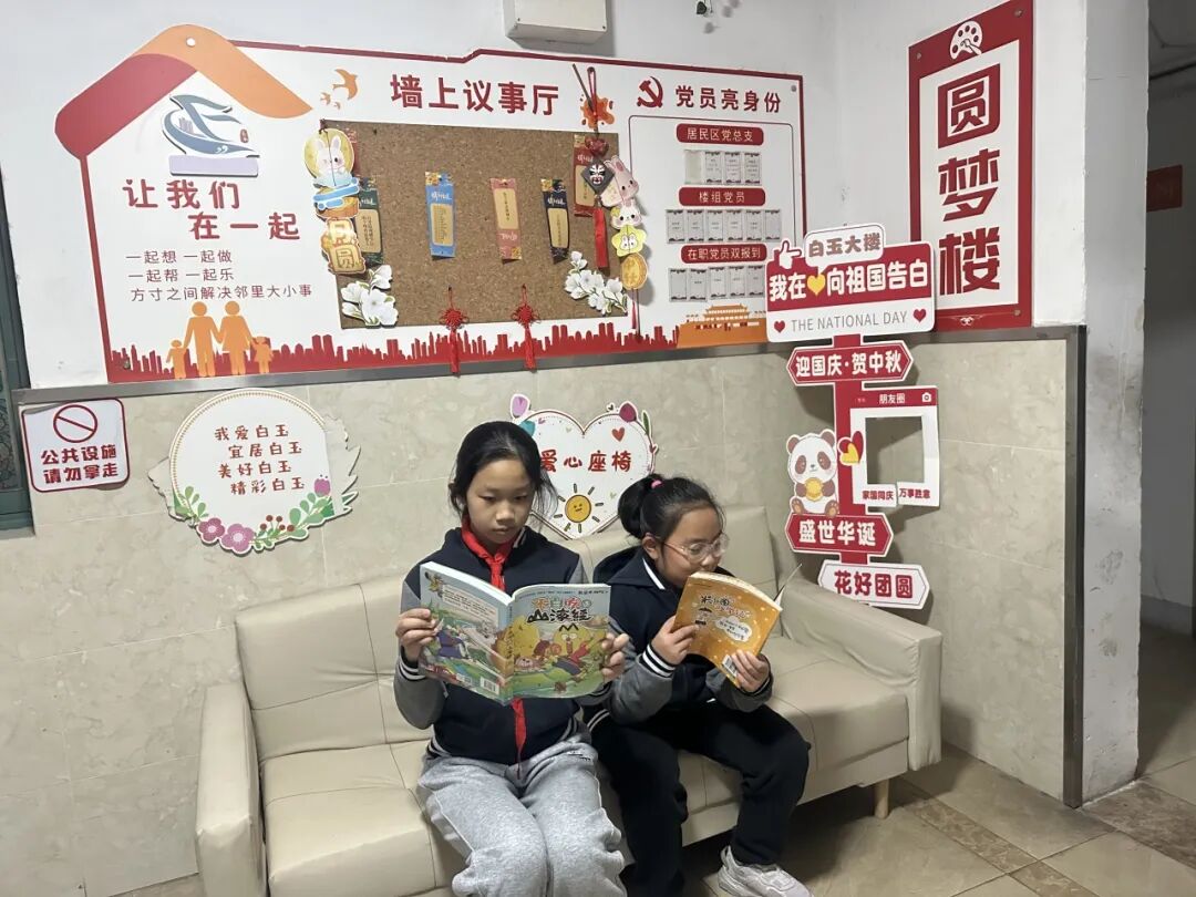 走进白玉一委115号楼,温馨和谐的氛围扑面而来。楼组以“圆梦楼”为核心主题,精心打造多元便民空间:暖心设置供居民休憩交流的爱心沙发,搭建“一起想、一起做、一起帮、一起乐”的墙上议事厅,展示居民对祖国的深情告白,呈现“第二梯队”手绘的“星辰大海”彩绘墙,配备藏书丰富的共享书架。居民或驻足观赏、静坐品读,或围坐议事、共话家常,邻里相融、其乐融融,尽显楼组生活的温暖惬意与生机活力。