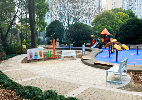 儿童乐园(周末下午、日常晚饭后人流最集中)——家长们带孩子玩耍时,通常需要陪伴1至2个小时,有的站着、有的靠在器械上,有的长者自带小板凳。