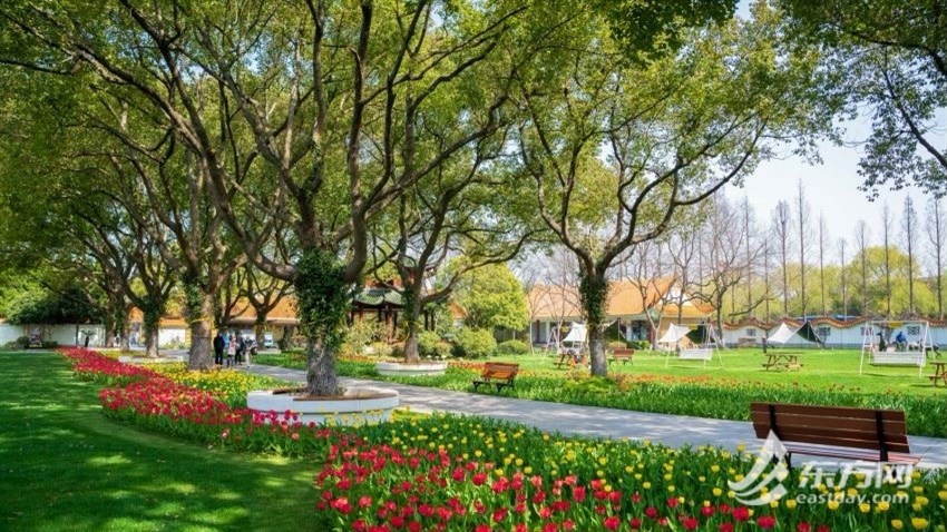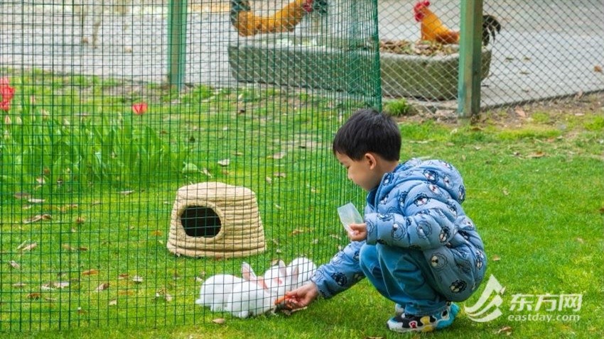 位于青浦的福寿园,眼下郁金香开得缤纷多姿,树木葱郁葳蕤。草坪上有白鸽、湖中有天鹅,园内还新添了萌宠小兔,经过的年轻人、老年人、带孩子的家长都放慢脚步观赏互动。