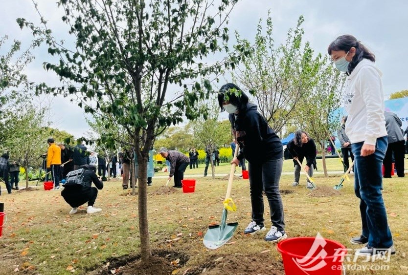 上海滨海古园日前举办了一场别开生面的植树活动,海葬者家属们手执铁锹在园中齐齐种下12棵樱花树苗并系上彩色丝带,寓意生命传承、美好新开始。