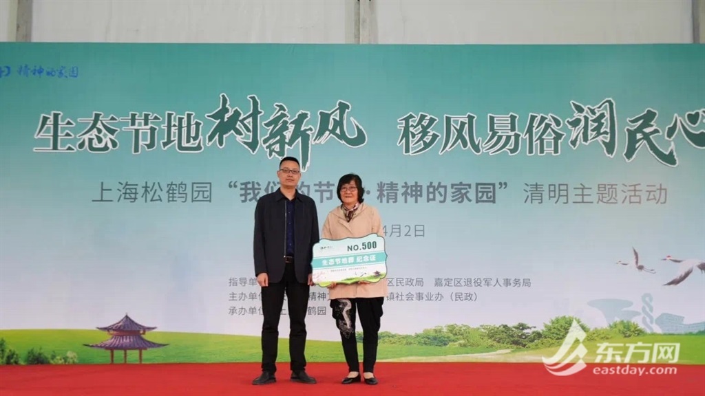 市民张女士作为家庭代表领到了该园第500张“生态葬纪念证”,她表示很荣幸,也想向身边更多人传递环保风尚理念。