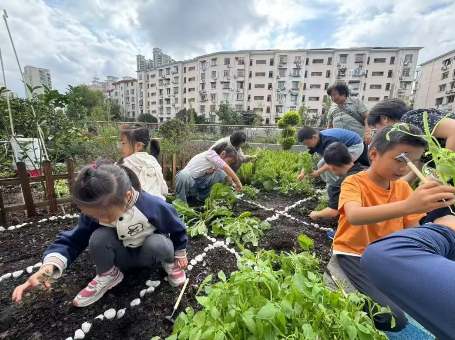 科普环节结束后,孩子们前往社区休闲广场的种植现场。专业园艺老师全程手把手指导,从翻土松土、规范播种,到精准浇水、科学施肥,每一个步骤都耐心示范、细致讲解。孩子们认真记录种植要点,互帮互助、分工协作,有的挥着小铲子翻土,有的小心翼翼摆放花苗,有的提着水壶浇水,忙得不亦乐乎。原本杂草丛生的闲置地块,在孩子们的共同努力下,逐渐呈现出整齐的菜畦与嫩绿的绿植,一幅充满生机的香草园画卷徐徐展开。后续,这些“小小园主”还将定期开展巡查养护,用持续的责任心呵护这片共同的绿色天地。