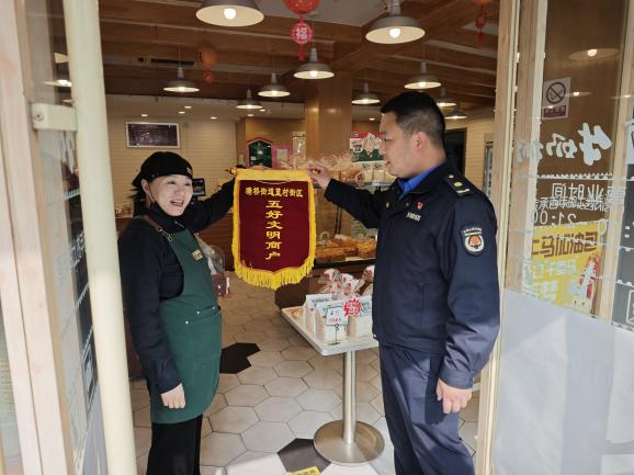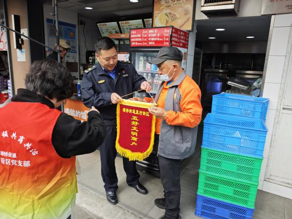 以“五好文明商户”评选为平台,推动商户从被动管理向主动参与转变。此次评选紧扣“五好”标准,涵盖门前三包、合规经营、消防安全等核心内容,由街居理事会牵头,联合相关职能部门、网格及街区党支部开展多轮走访筛选,既服务商户、引导规范经营,也推动治理提质,最终评出首批“五好文明商户”。