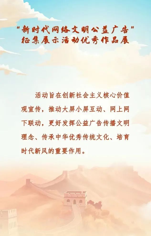 汇聚创意力量,传递清朗新风。“新时代网络文明公益广告”征集展示活动优秀作品展即日起登陆新江湾城社区文化活动中心。本次展出作品共102件,涵盖中国梦、中华文明、“一带一路”、先进典型、未成年人思想道德建设、爱我国防、文明新风等主题。