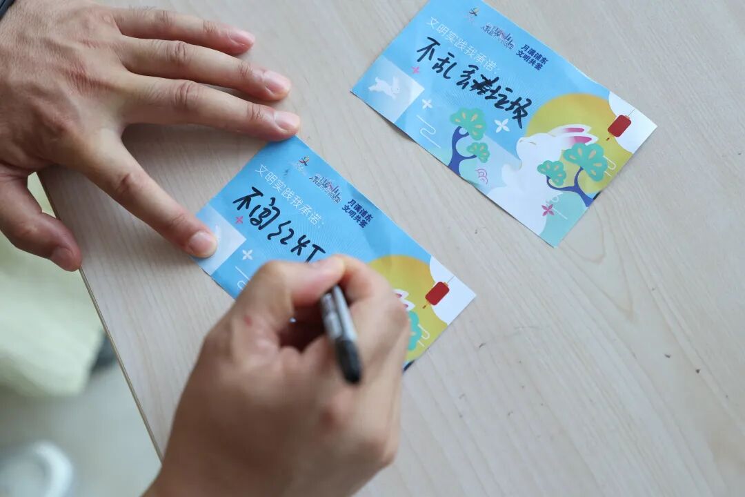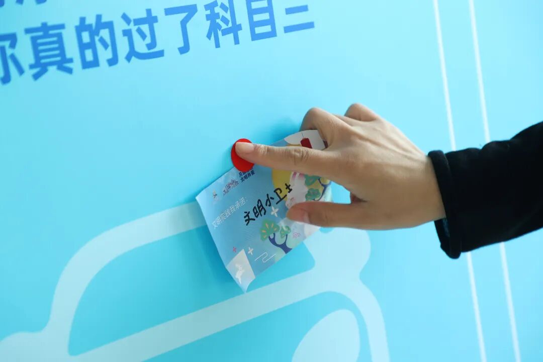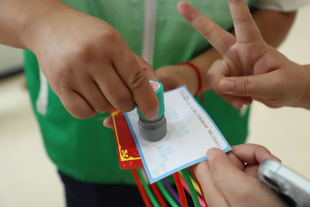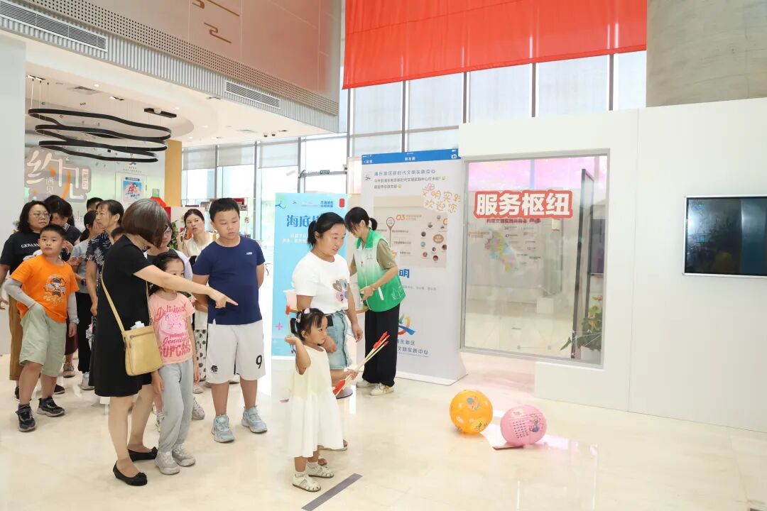 活动伊始,新时代文明实践中心门厅处的“月印初心·文明承诺墙”便吸引了众多市民驻足。“我承诺反对浪费,光盘行动我践行”、“我承诺安全城区,你我共同守护”……家长带着孩子认真阅读每一条文明公约,郑重地将象征承诺的贴纸贴上,同时领取集章卡,开启今天的文明之旅。“这样的入场方式很有仪式感,让孩子在游戏中理解文明行为的重要性。”带着女儿前来参加活动的市民张女士表示。
