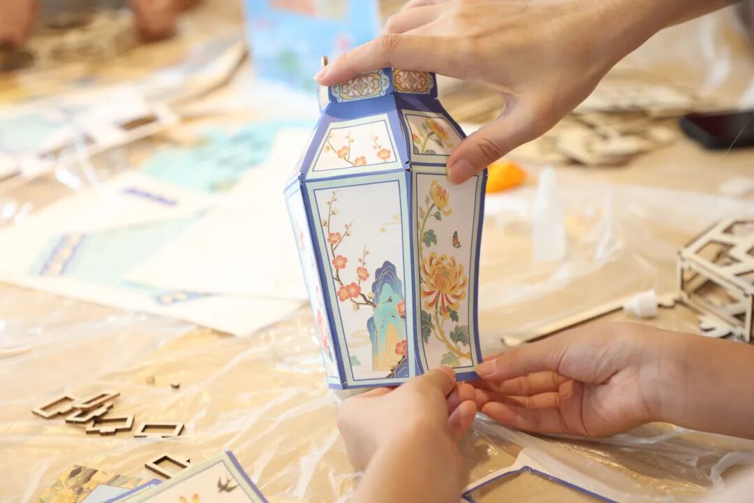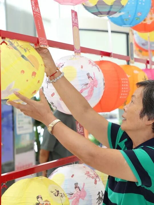 活动的温情时刻凝聚于“传月”手工传承区。在老师的悉心指导下,市民们齐聚一堂,动手制作“灯影月魂”主题花灯。从固定纸张到安装灯盏,每一步都倾注用心与期待。一位母亲一边协助女儿完成花灯的最后一笔,一边轻声讲述着自己童年中秋的记忆,两代人的情感在指尖交汇传承。这场手作体验,不仅让古老技艺“活”在当下,更让中秋的祝福与文明的理念通过亲手创造的过程,深深烙印在每个人的心间。