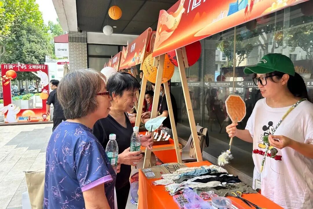 2025年9月28日,由杨浦区精神文明建设办公室与延吉新村街道联合主办的“我们的节日·中秋”主题活动暨水丰路文明创意街区“四季花 Young”主题活动在水丰汇国家数字传媒产业园区内举行。百余位居民在非遗传承与环保公益的交融中,体验了一场别具一格的中秋盛宴。