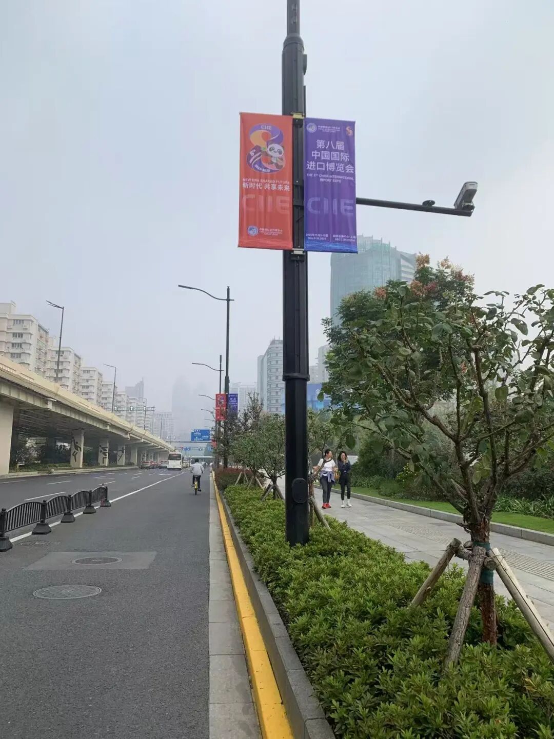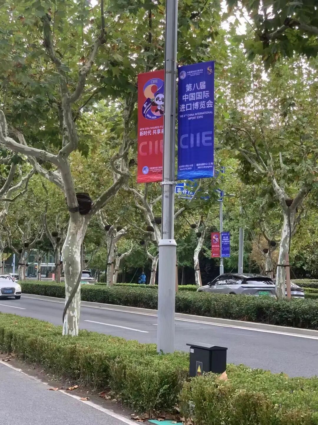 从衡山路到龙腾大道,定制款进博主题道旗迎风招展,"新时代 共享未来"等标语与梧桐叶影相映成趣。与此同时,港汇恒隆广场、美罗城等地标建筑LED大屏组成"光影方阵",每日循环播放进博会宣传片及主题宣传海报。在徐家汇书院、西岸美术馆等公共空间,电子屏实时更新进博会最新资讯,让市民在文化浸润中感受进博脉动。上下滑动查看更多进博会倒计时已启动徐汇区正以文明之名邀您共赴这场开放之约!无论是漫步滨江感受进博艺术氛围还是在志愿服务站收获暖心帮助每个角落都在诉说徐汇已准备好与全球宾客共享文明之美!