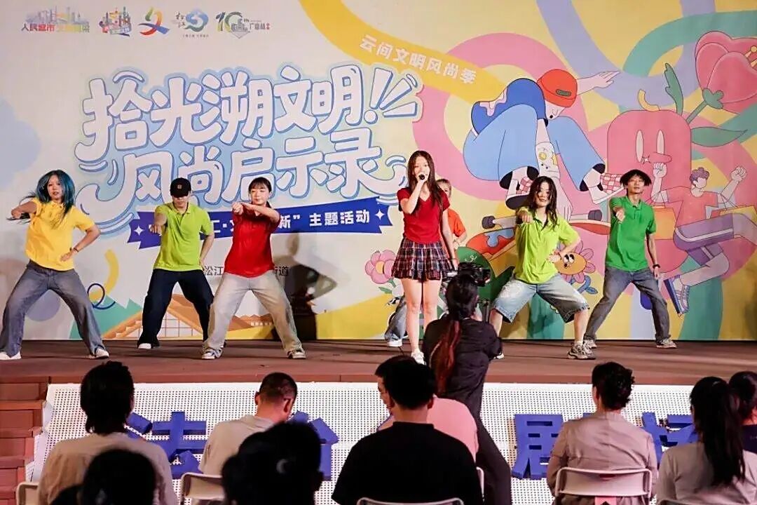 以资源下沉丰富精神生活。围绕文化传承、文明实践、民生服务、科普教育等领域,让文明融入日常场景。“云间可采莲 —— 上海之根深度之旅” 带市民溯源千年文脉;“读不止”书局化身文明驿站,让墨香与书香萦绕日常;“云间绿舟”新时代文明实践项目“人宠瑜伽行”,用趣味宣讲、互动游戏传递 “文明养宠、共享美好” 理念;“松江区全民数字素养与技能提升体验日”助力市民提升数字技能;方松街道草地音乐 SHOW 凝聚社区温情;永丰街道慈善文化集市将爱心义卖与文明宣传结合。
