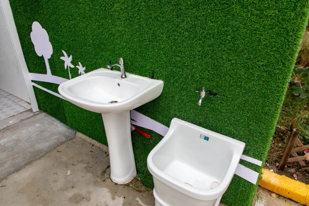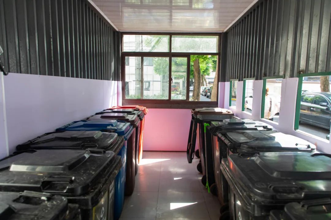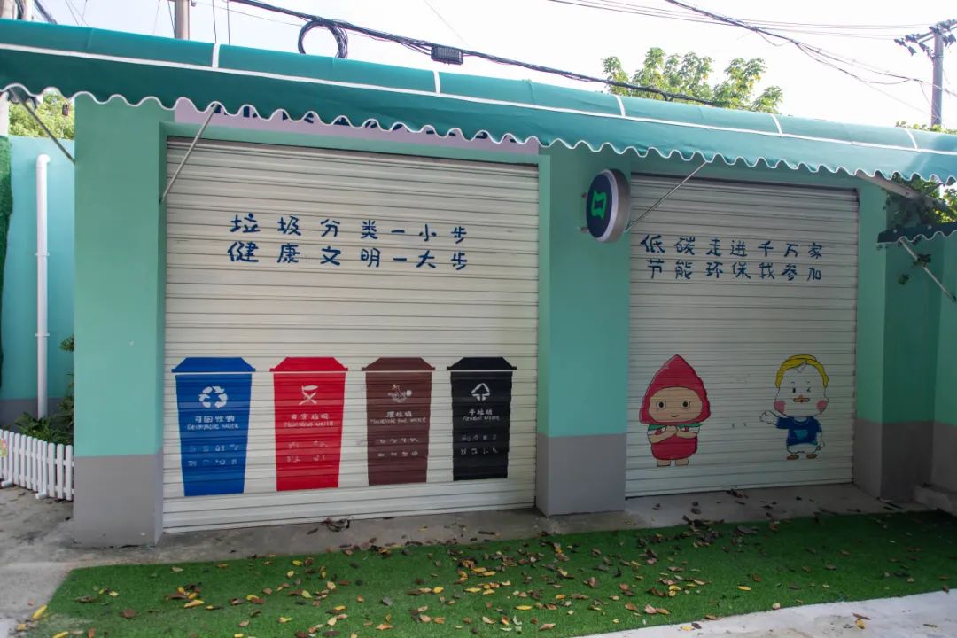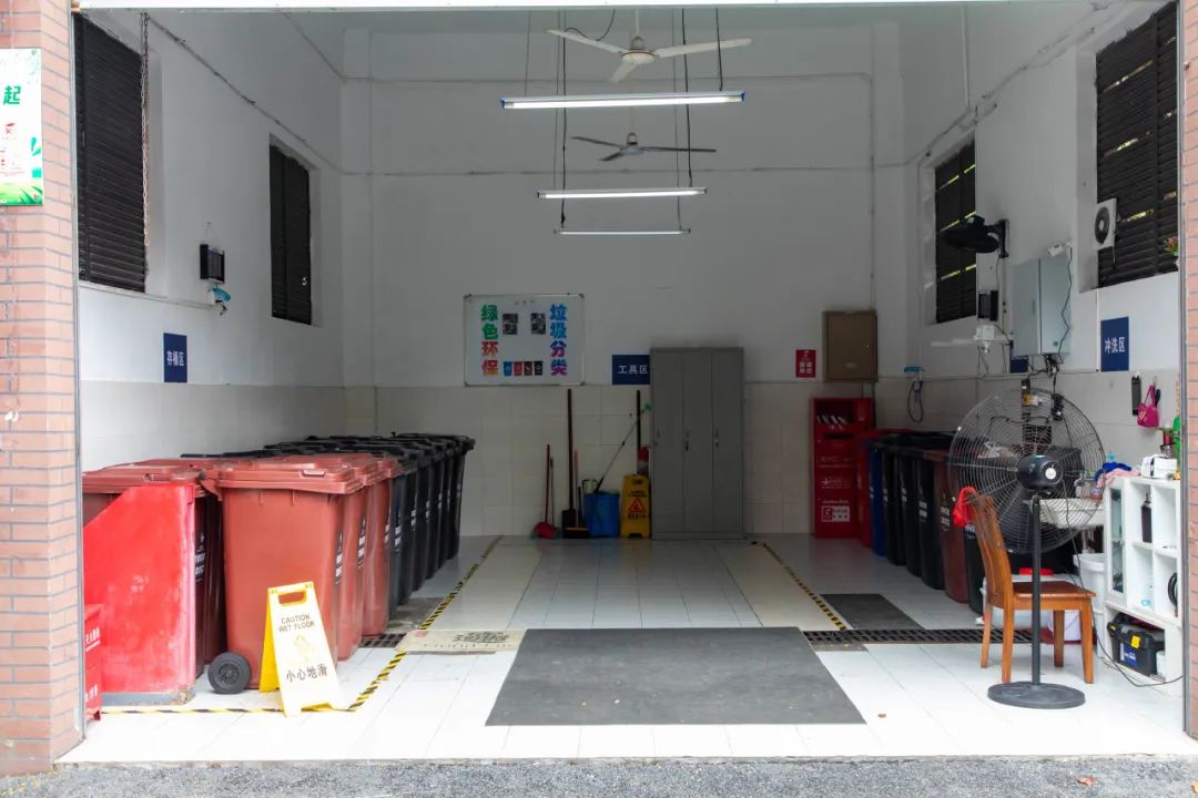 种植绿植花卉、装扮涂鸦彩绘、营造宣传氛围……改造后的垃圾箱房不仅“颜值”爆棚,更是将实用性能拉满。走进内部,除虫灯、除臭净味设备、排风扇、洗手台、太阳能节能照明灯、灭火器等设施设备也是一应俱全,科学规划的功能布局,最大程度提升垃圾投放的便利度。