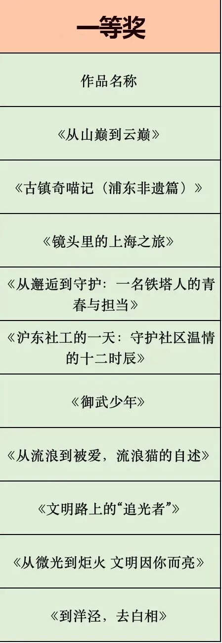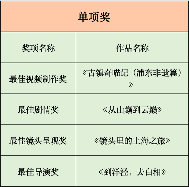 聚焦创作核心维度的四大单项奖同步揭晓,尽显作品特色与创作匠心:《镜头里的上海之旅》以灵动光影定格城市旅途之美,斩获最佳镜头呈现奖;《从山巅到云巅》用跨越山海的执着叙事诠释追梦初心与责任担当,摘得最佳剧情奖;《古镇奇喵记(浦东非遗篇)》以巧思剪辑让非遗文化与萌趣元素碰撞出独特质感,获评最佳视频制作奖;《到洋泾,去白相》凭借导演对叙事节奏的精准把控与市井烟火的生动呈现,拿下最佳导演奖。