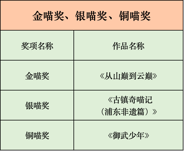 最受关注的金喵奖、银喵奖、铜喵奖在压轴环节重磅揭晓。经第三届全国文明家庭代表现场开奖,《从山巅到云巅》《古镇奇喵记(浦东非遗篇)》《御武少年》等3部涵盖非遗传承、青春追梦等多元主题的精品力作脱颖而出。现场展播环节中,获奖作品的精彩片段轮番呈现,让观众重温光影中的感动与力量,赢得阵阵掌声。