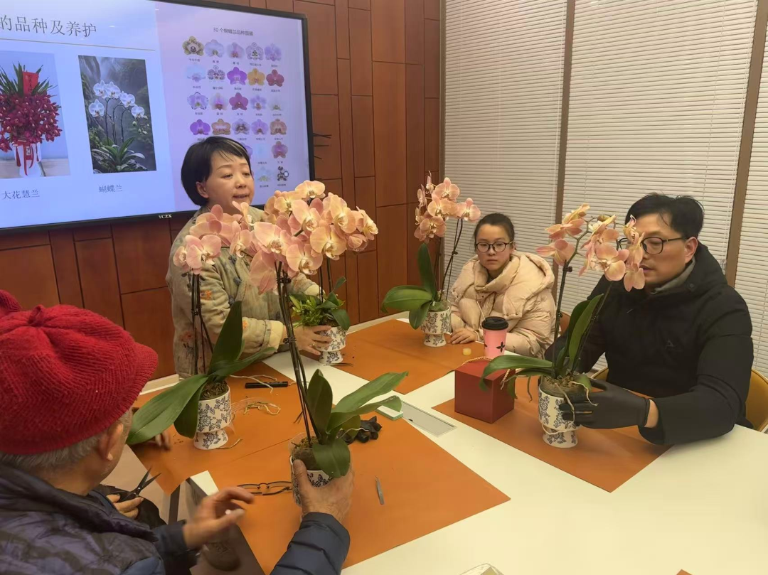 随后的年花蝴蝶兰制作同样气氛热烈。翠叶与花箭在大家的巧手下被精心搭配、错落有致地安置,一盆盆雅致大方的蝴蝶兰盆栽悄然绽放。作为象征高洁、典雅与美好的新春吉祥花卉,好人代表们手捧亲手制作的年花,脸上洋溢着幸福的笑容。“这份年花既装点了家居,也承载着对我们的新春祝福,心里暖洋洋的。”在场的杨先生与妻子朱女士表示。手工创作不仅让大家体验到传统民俗的魅力,也在互动交流中增进了情谊,使榜样力量在潜移默化中传递。
